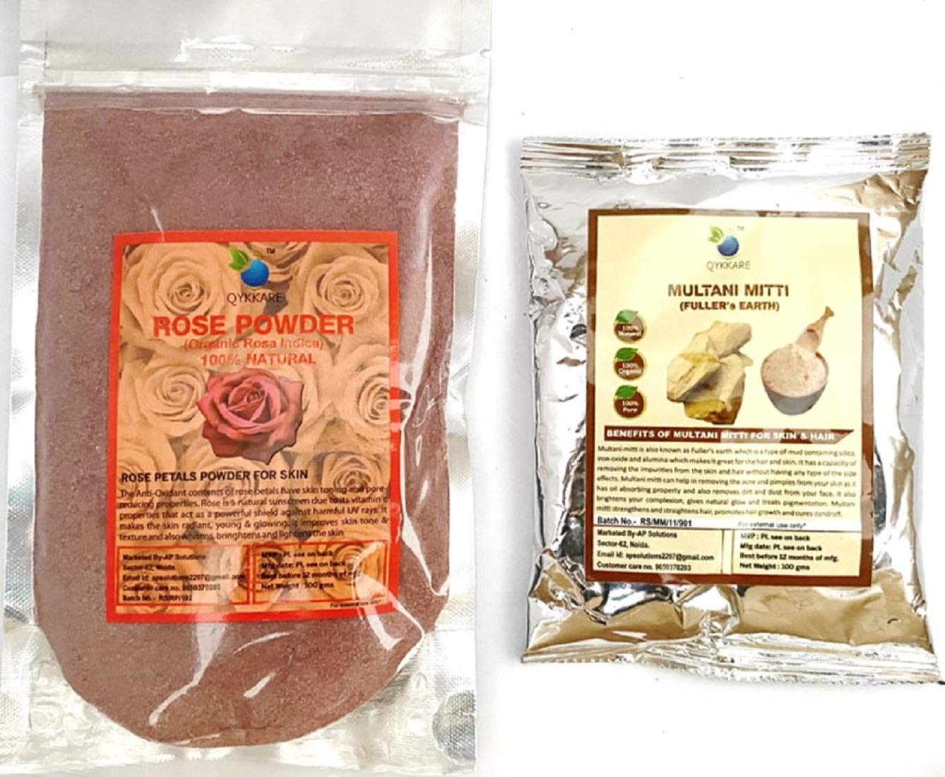 • Package content : Rose Powder (100 GM) & Multani Mitti (100 GM)