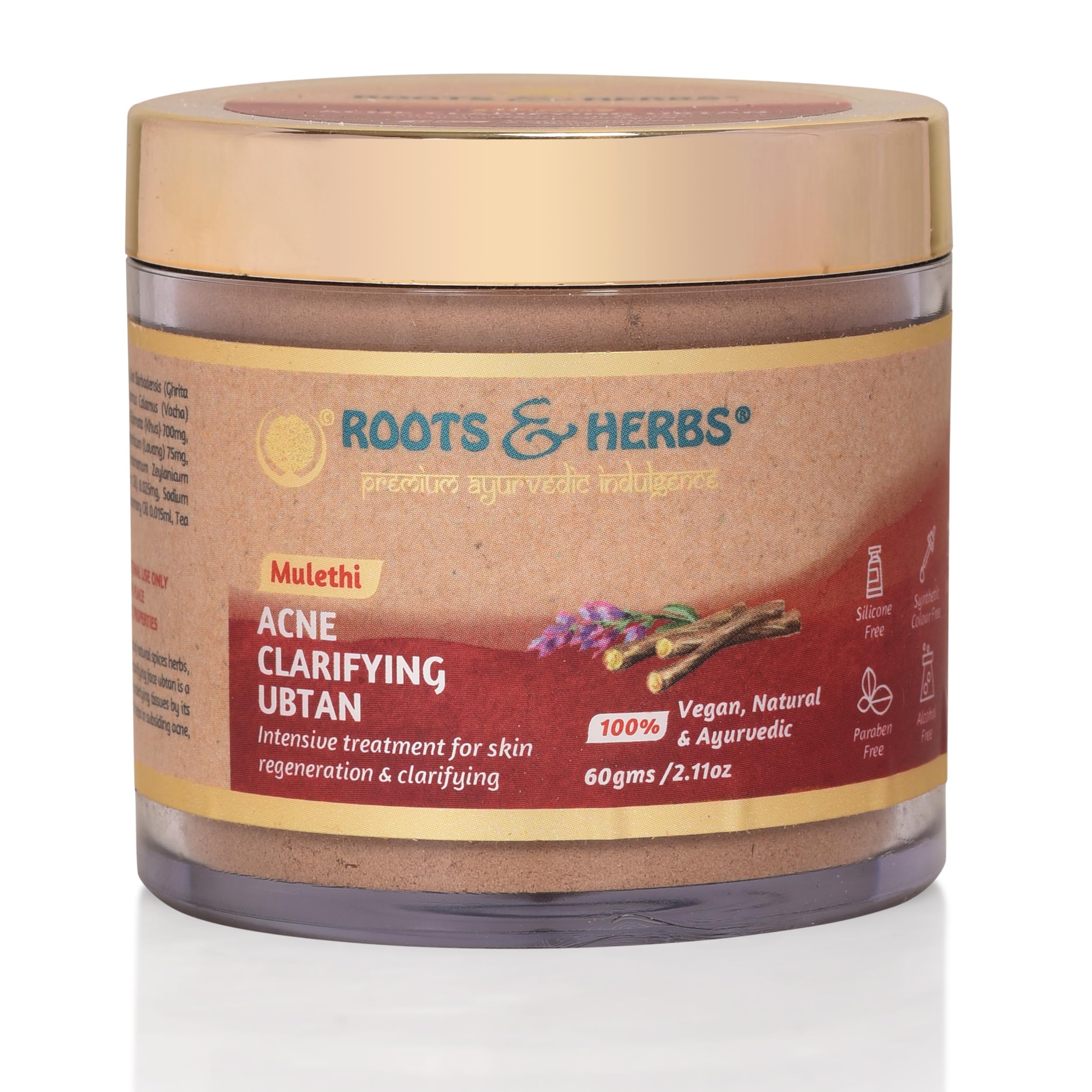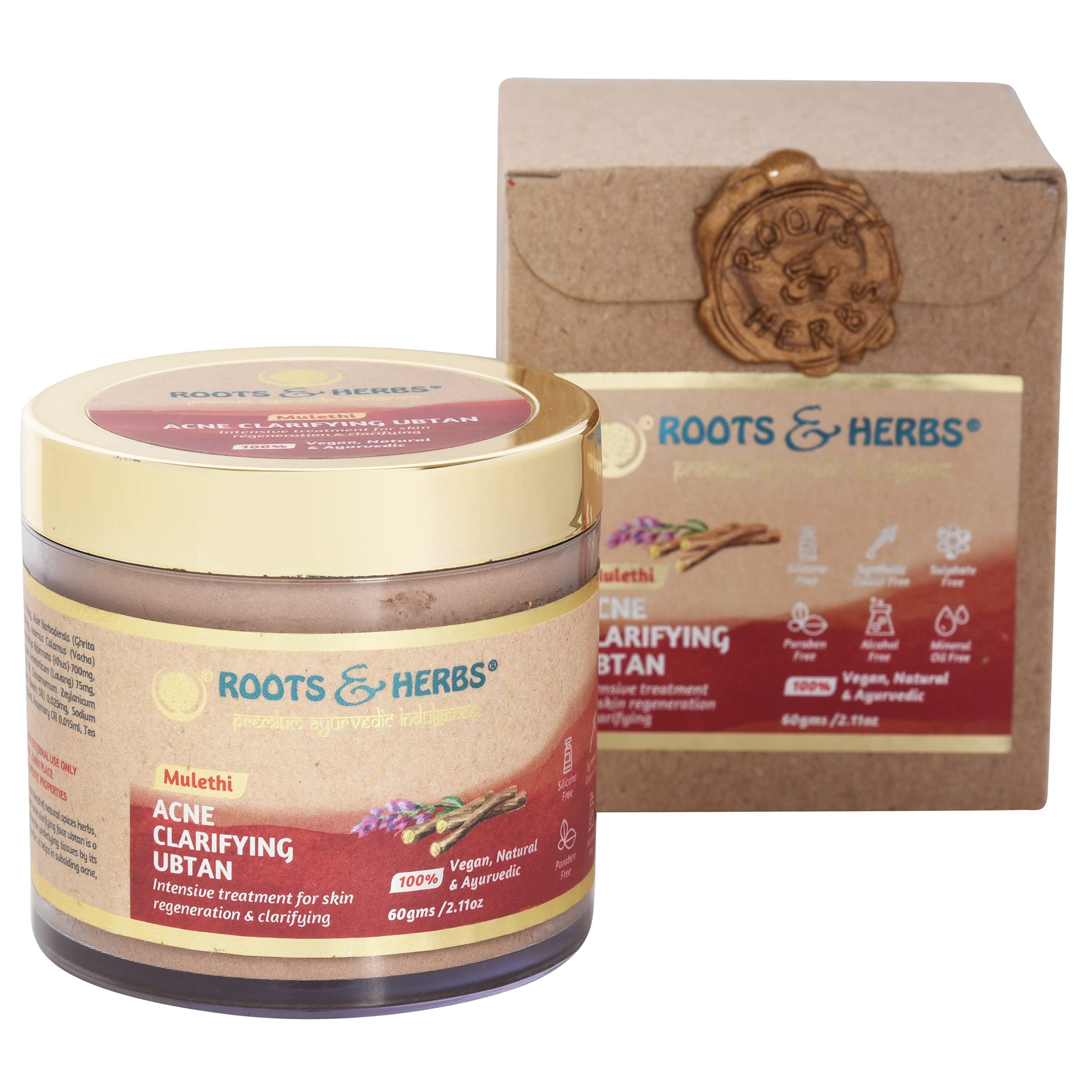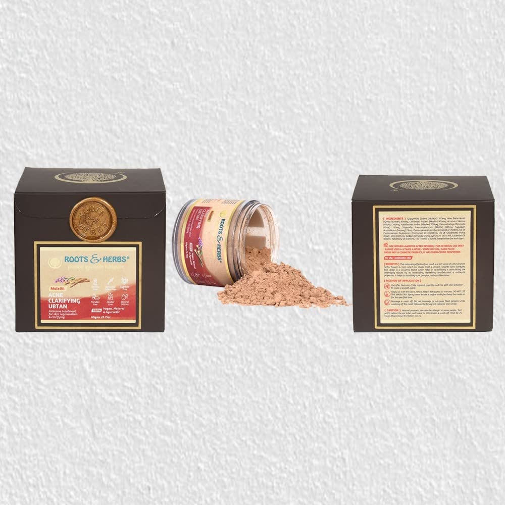 Roots & Herbs Ayurvedic Natural Treatment 100% Vegan No Paraben Mulethi Acne Clarifying Face Ubtan - 60 gm