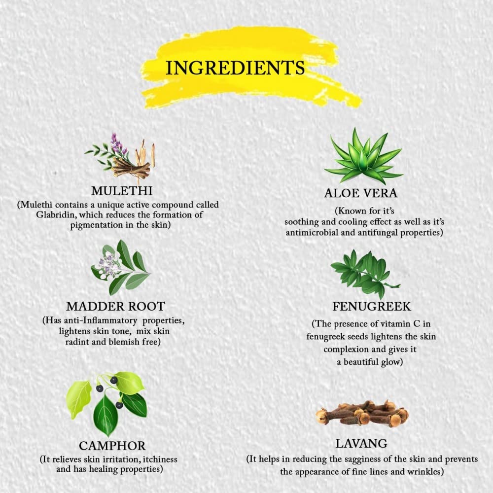 This ayurvedic natural treatment skin care product helps in subsiding acne pimples rashes and blemishes. This herbal ubtan plays an imperative part in evacuating the dead cells of the skin and its dryness