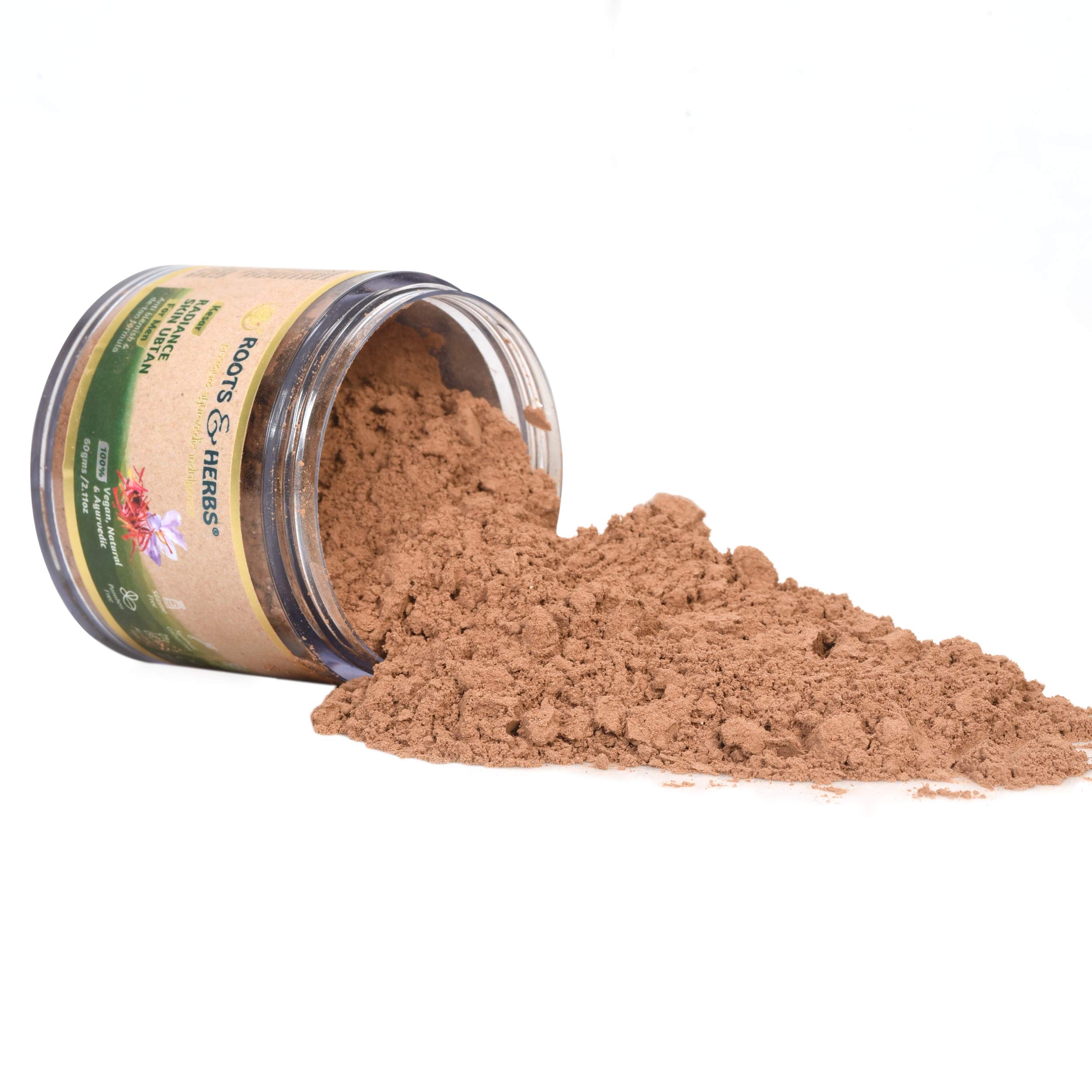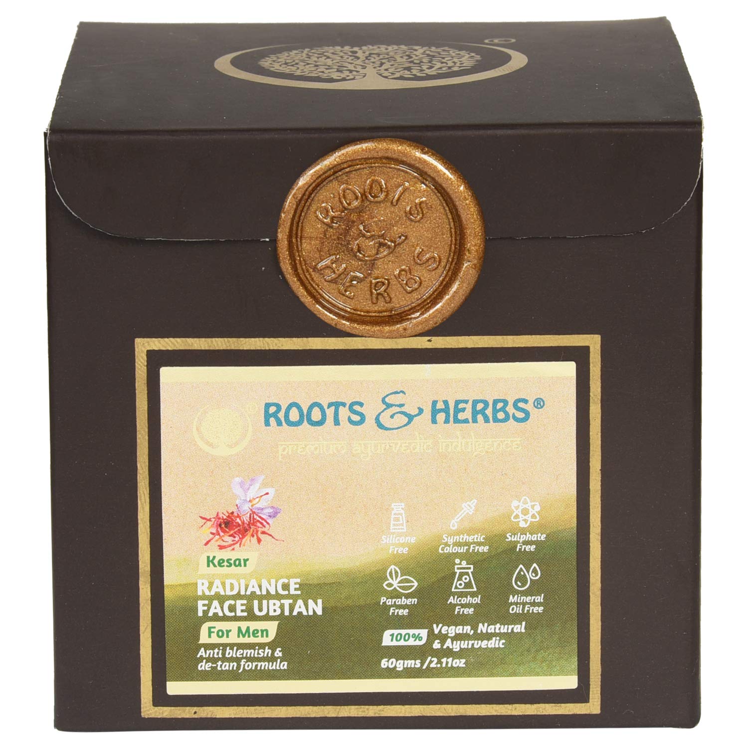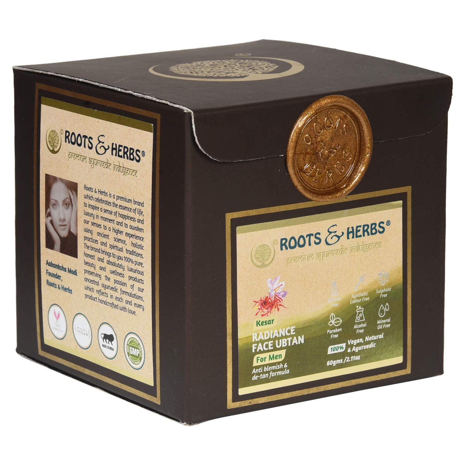 Roots and herbs brings you kesar radiance enhancing skin ubtan which is an ideal face ubtan to be applied on face and body. It is made with a perfect blend of most effective and potent natural herbs and steam distilled oil. By removing the dead skin cells this ubtan for men offers a smooth and clear skin. Ingredients: Saffron extract ghritkumari extract rose petals liquorice extract Indian gooseberry extract white sandal wood nutmeg extract b katak jivanti fig extract manjistha patang k yasada bhasma cold pressed wheat germ Cold pressed sweet almond oil cold pressed rosehip Cold pressed vitamin e oil steam distilled sandal wood Steam distilled frankincense Steam distilled cinnamon Steam distilled nutmeg Sodium benzoate. Frequency - this roots herbs skin ubtan can be used 4-5 times a week. Continuous use for 6-8 weeks will bring a noticeable difference. Application - take the required quantity of this face pack for glowing skin and mix with kesar radiant skin activator to make a smooth paste. Apply all over the face and neck. When semi-dry wet the mask massage and rinse off. Followed by vertiver luminous skin elixir.