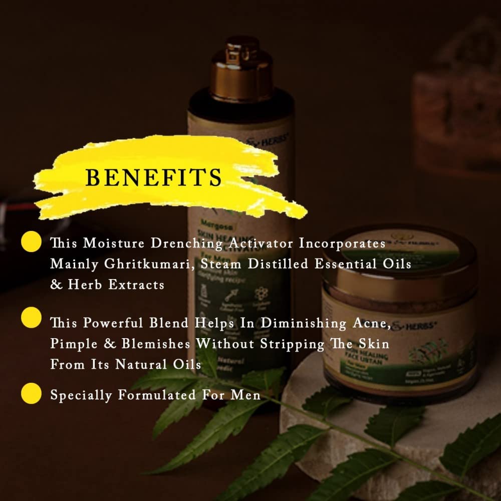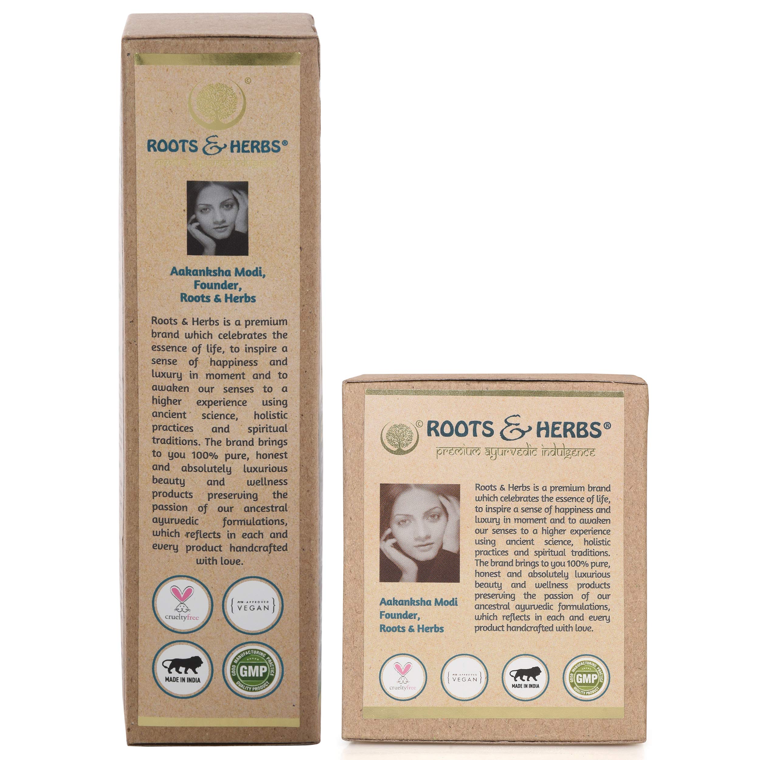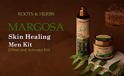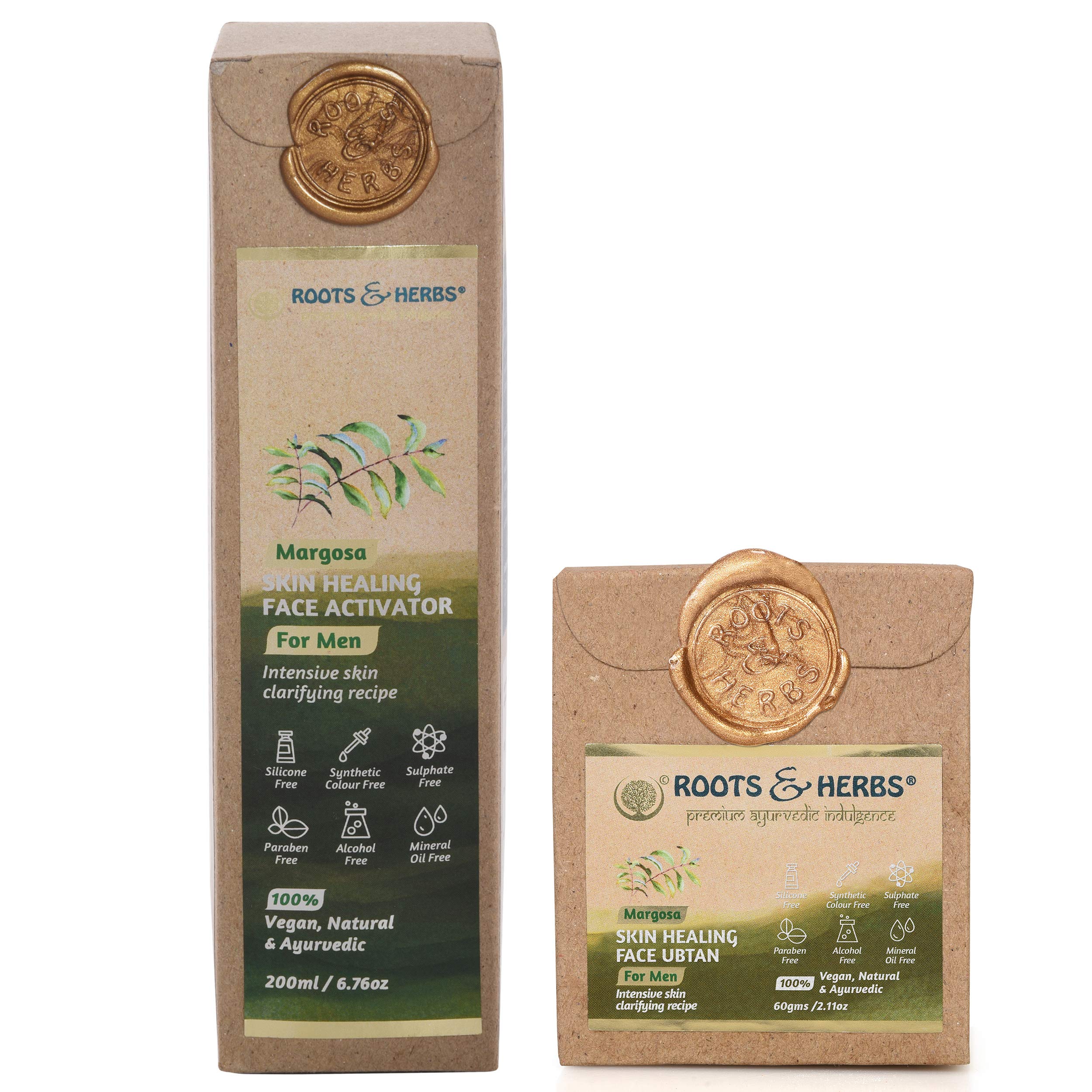 Roots And Herbs Ayurvedic Natural Treatment 100% Vegan No Paraben No SLS Margosa Skin Healing Face Ubtan and Activator Kit 60 gm + 200 ML