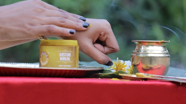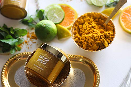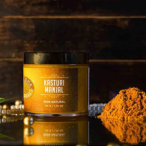 • Product details - Shesha Ayurveda Yellow Kasturi Manjal is a traditional ubtan for a healthy and glowing complexion. Use it as a face pack/a spot mixed with curd/milk to get a clear skin.