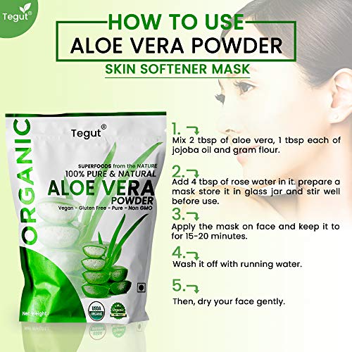 TeAloevera Powder enriched with the goodness of aloevera is a natural rescue for unhealthy and dry hair. With absolutely pure extracts and no artificial inclusion of chemicit is the perfect to healthy and shining hair. Key Features : 1. Absolutely 100% organic without any artificial chemic2. Triple sifted microfine powder with 100% purity of natural ingredients 3. Completely natural and thus absolutely health-friendly 4. Made of fresh crops to ensure the best of results 5. 100% Safe and thus Dermatologist recommended. Benefits : 1. Treats unhealthy scalp with the goodness of aloevera 2. Is highly favorable for hair growth 3. s volume to hair and enriches its texture 4. Nourishes the scalp with required nutrition 5. Good for skin too with its and wrinkle-prevention features 6. Dermatologist recommended and extremely safe for hair as well as skin uses.