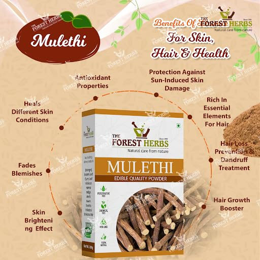 The Forest Herbs Natural Care From Nature Mulethi Powder For Face, Hair (200 Grams) Skin And Body | Edible | Licorice Powder For Skin Care