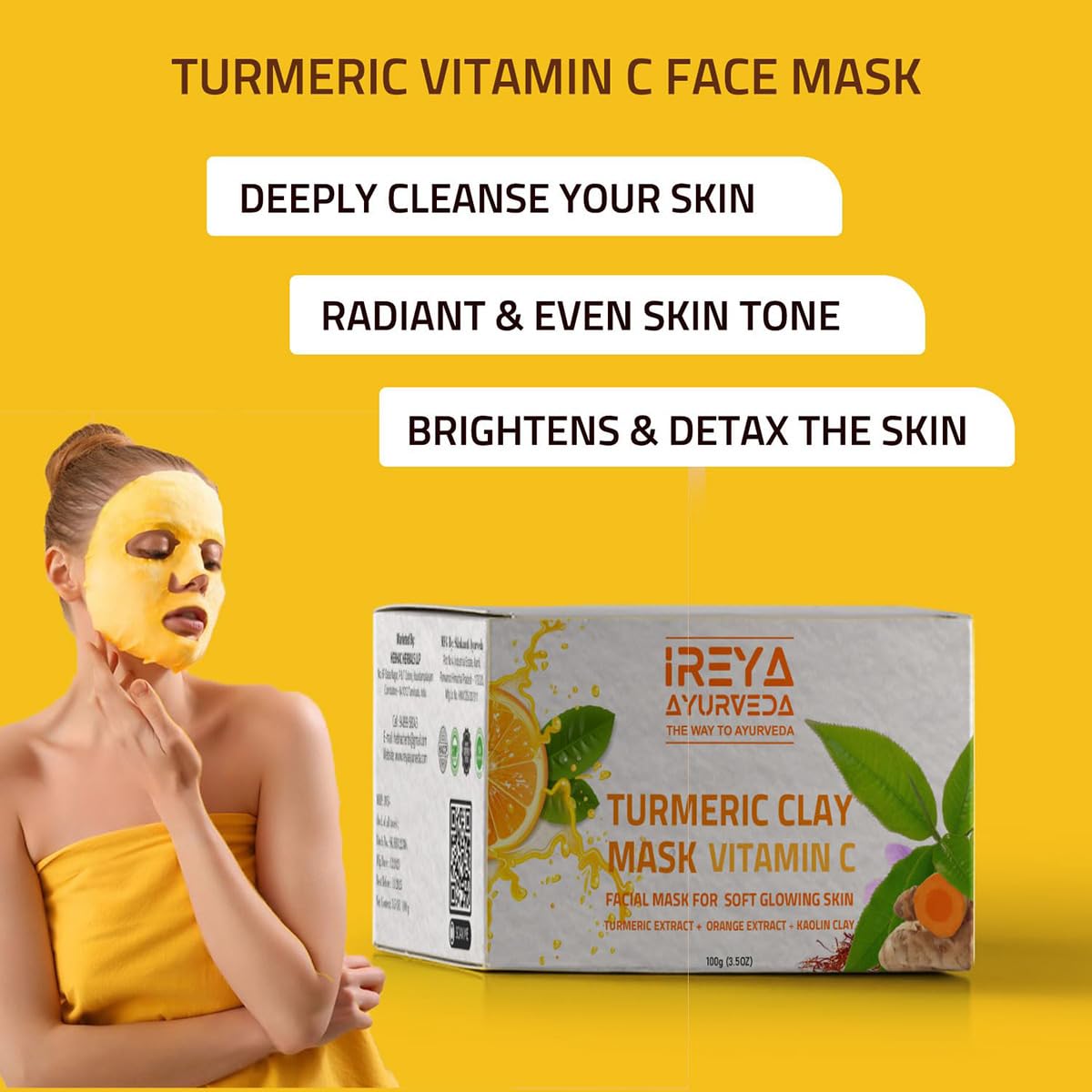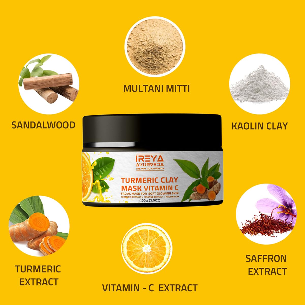• Clay Mask: Our turmeric face mask also contains clay which helps to detoxify the skin remove impurities and unclog pores. Kaolin clay is particularly good for oily or acne-prone skin as it helps to absorb excess oil. Kaolin & bentonite clays balance each