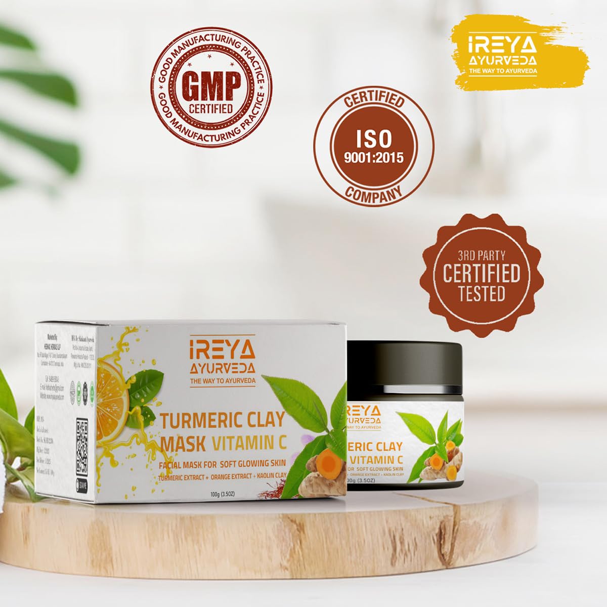• The turmeric face mask with kaolin clay has a strong cleaning effect and refreshing mud texture is easy to push away. Vitamin C for the face helps boost collagen which helps improve your face complexion to rejuvenate skin and make the skin firm and smooth