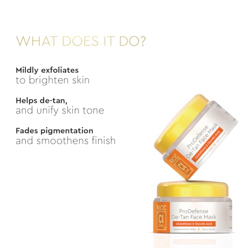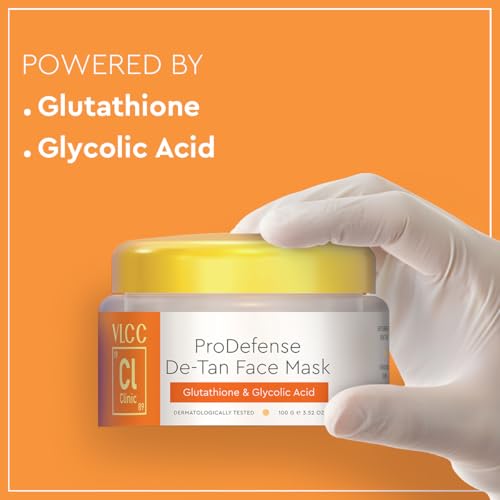 VLCC Clinic ProDefense De-Tan Face Mask - 100g | Powered with Glutathione + Glycolic Acid | Soothing, Refreshing and Calming Face Mask | Oil Control | Skin Brightening | Anti-Pigmentation Face Mask