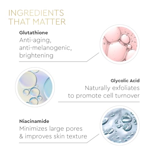 • 4) DETOXIFIES SKIN FOR BRIGHTER COMPLEXION: Glutathione known for its brightening and anti-ageing benefits helps get rid of free radicals lessen the visibility of wrinkles and fine lines fades dark spots and pigmentation to brighten skin tone