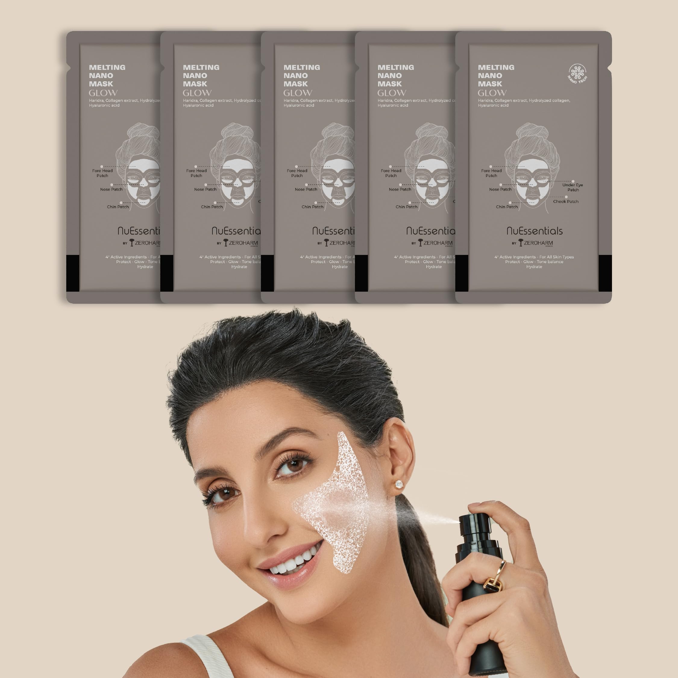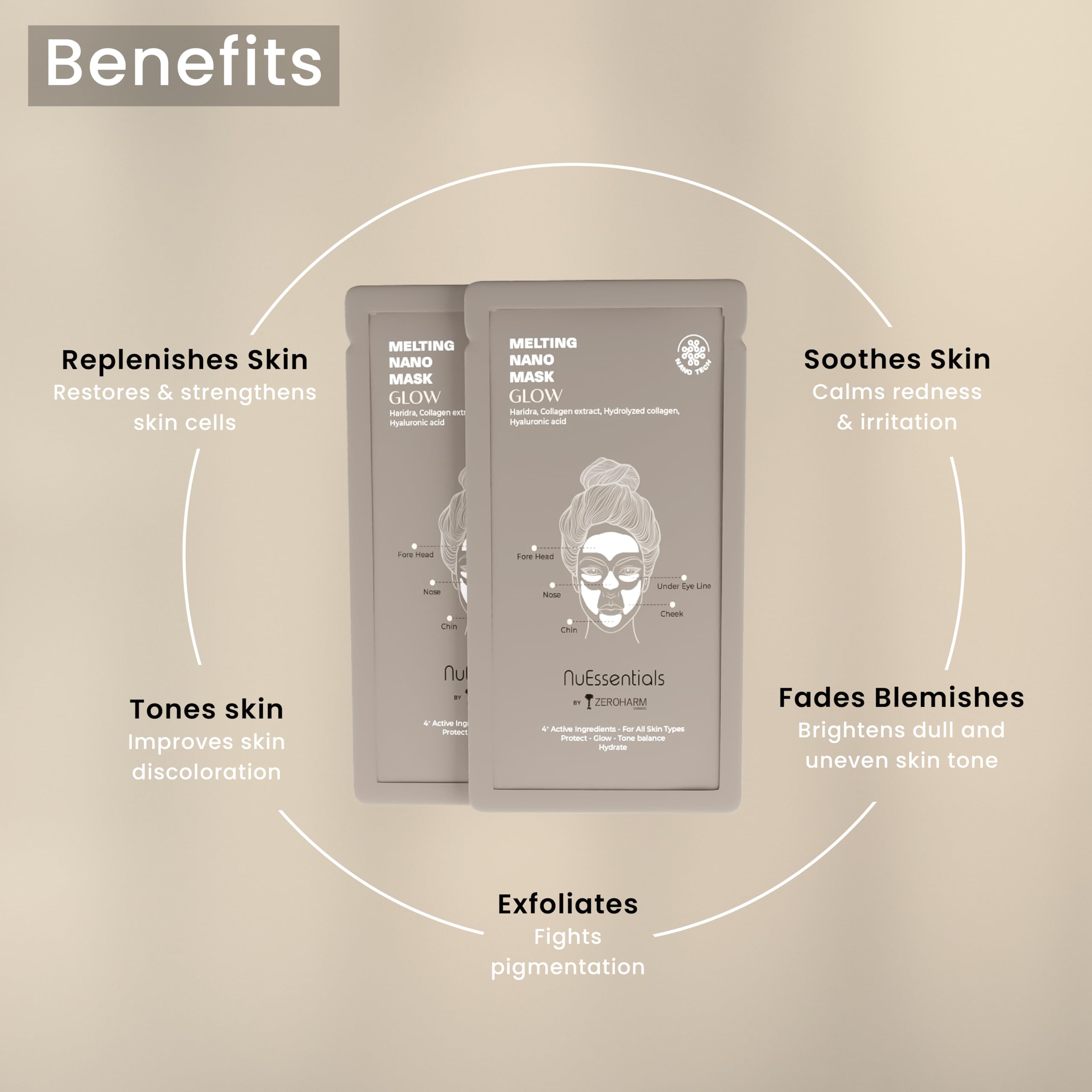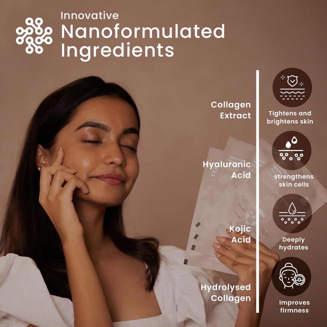 ZEROHARM Nuessentials Glow Melting Collagen Face Mask Sachet | 7X5 Sheets | Nanoformulated Collagen | Boosts Collagen | Hyaluronic Acid | Skin Hydration | Improved Skin Texture | For All Skin Types