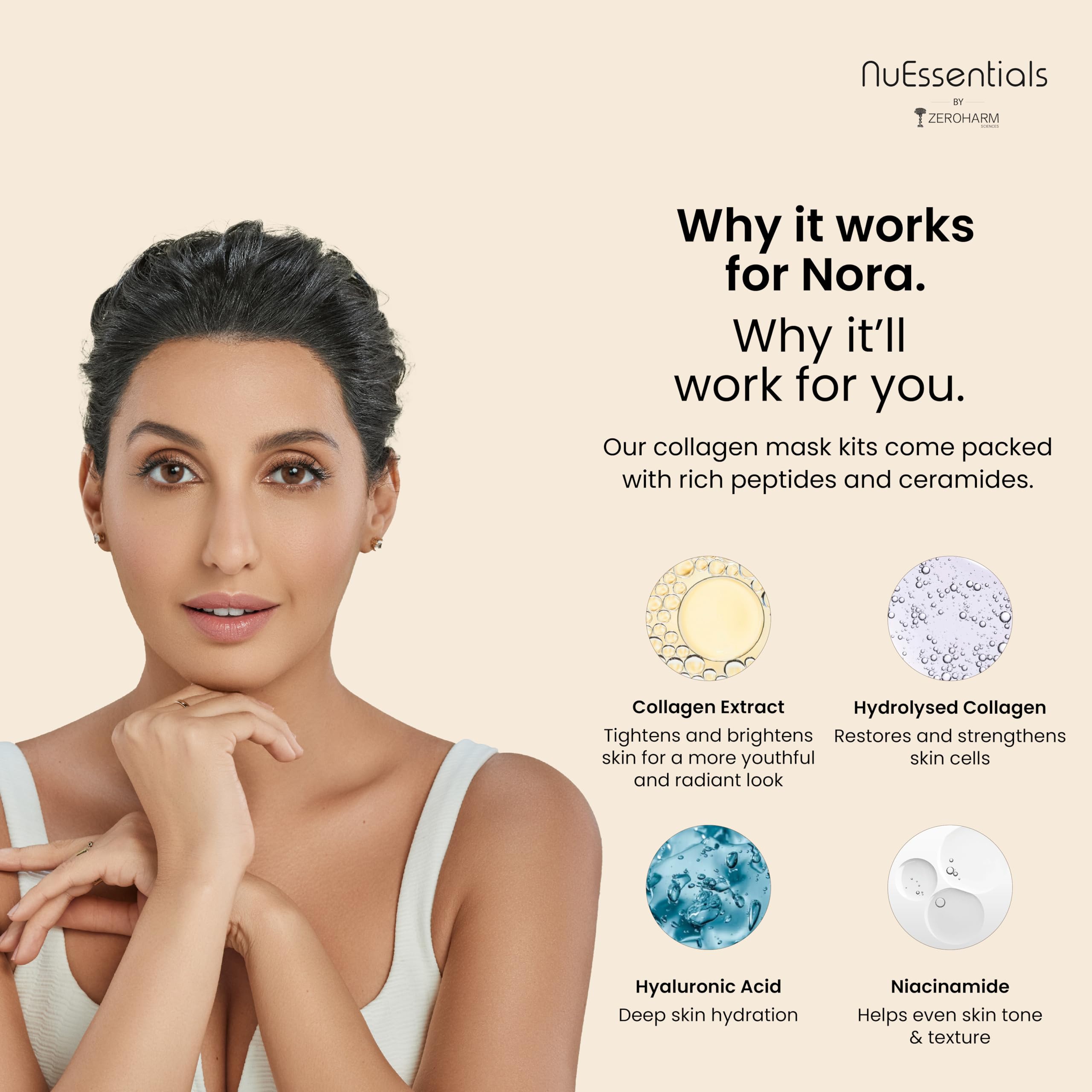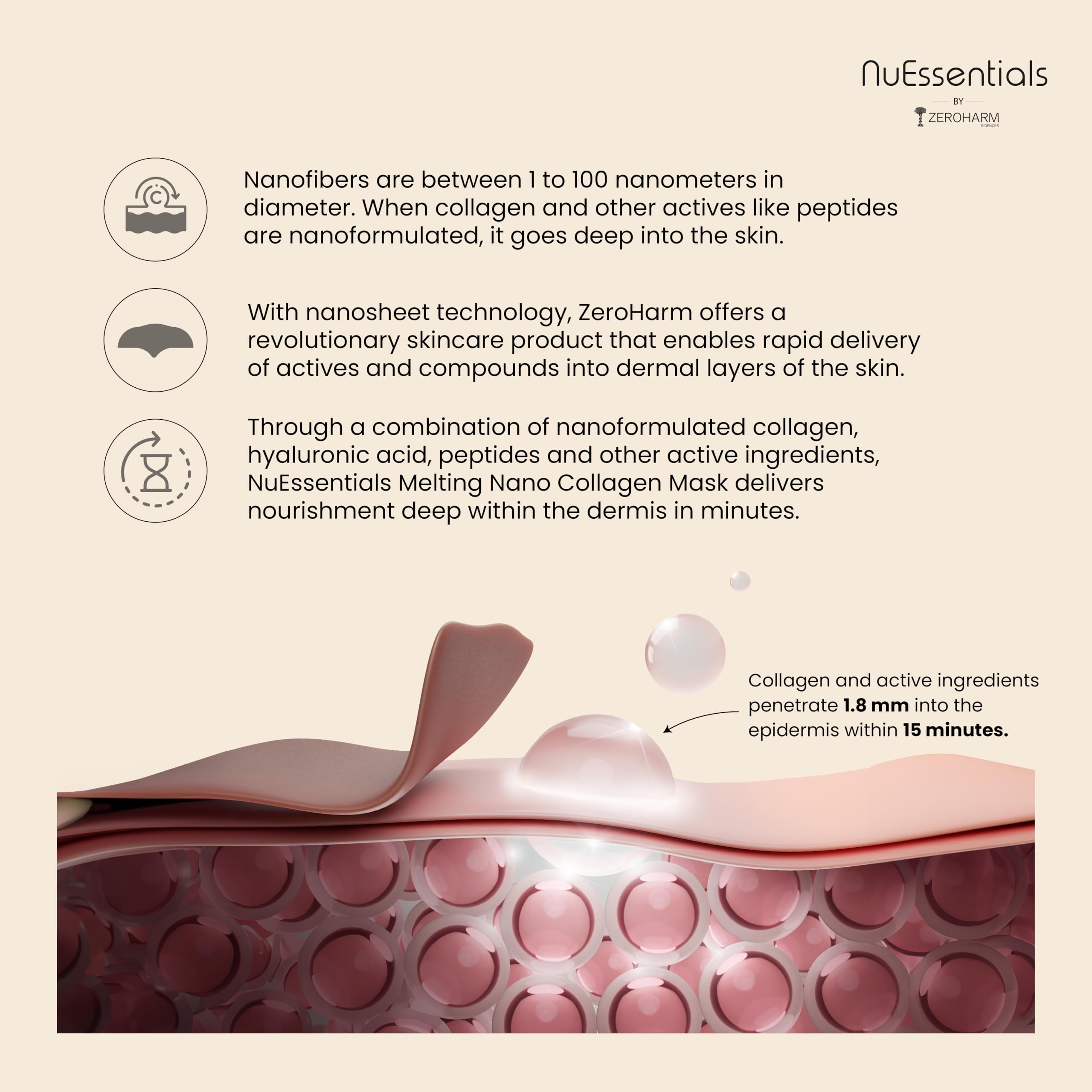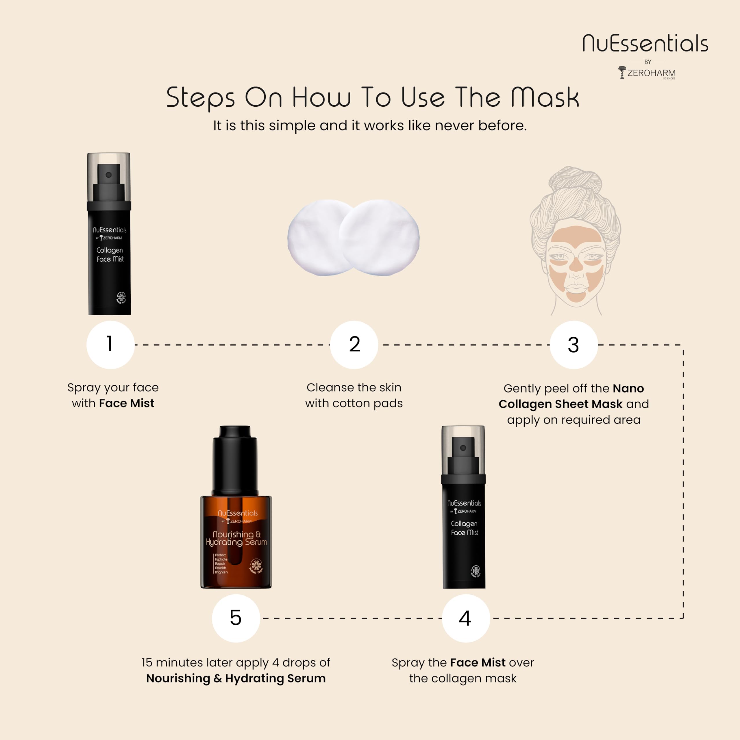 ZEROHARM Nuessentials Nourishing & Hydrating Mask Kit | Indias 1St Nano Collagen Mask | Deep Skin Hydration | Improved Skin Texture | Suitable For All Skin Types | Enhanced Absorption