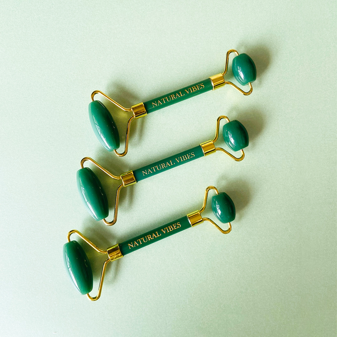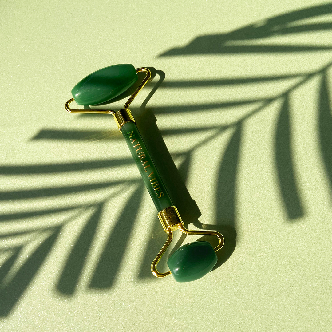 Natural Vibes Jade Roller & Massager for Face, Neck and Under eye with FREE Gold Beauty Elixir Oil