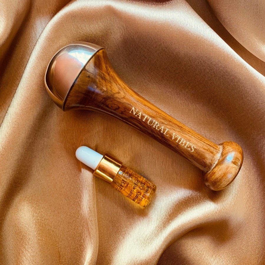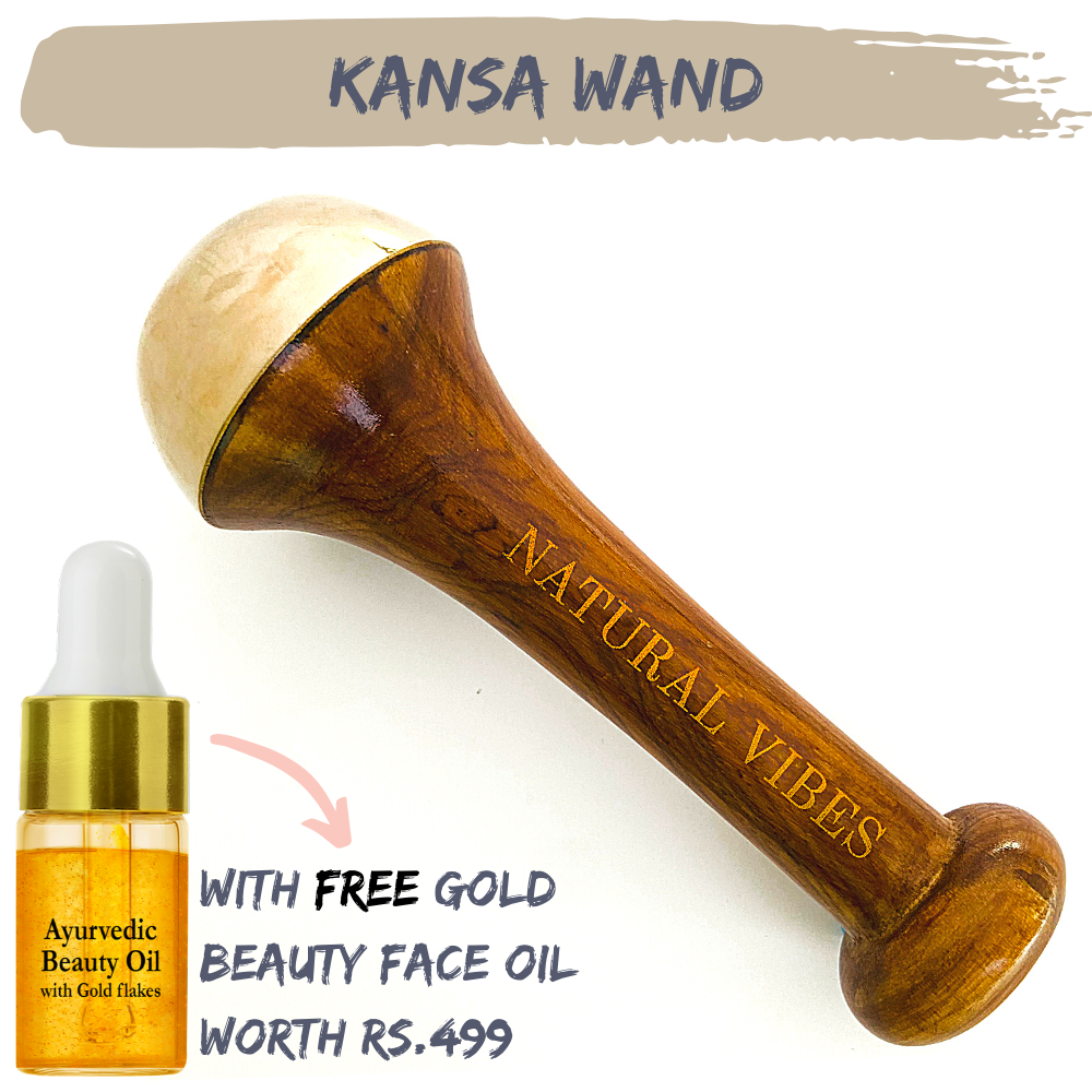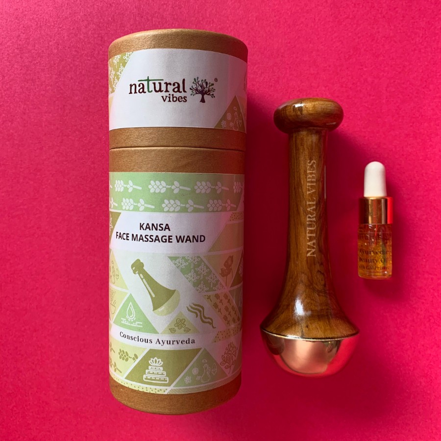 Natural Vibes Kansa Face Massage Wand with FREE Gold Beauty Elixir Oil