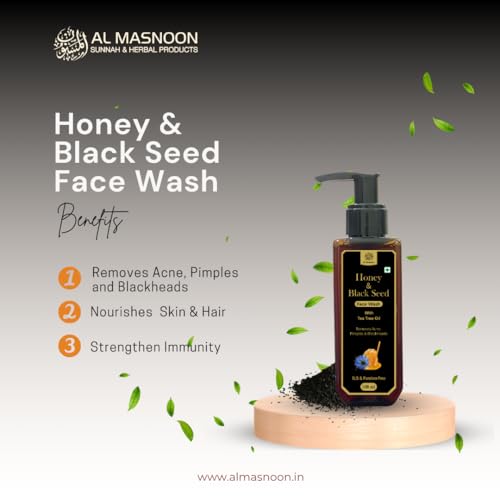 Al Masnoon Honey Blackseed Face Wash with Tea Tree Oil offers a luxurious and rejuvenating skincare experience. Crafted with the purest ingredients this face wash combines the moisturizing properties of pure honey the nourishing benefits of blackseed oil and extracts and the purifying essence of tea tree oil.