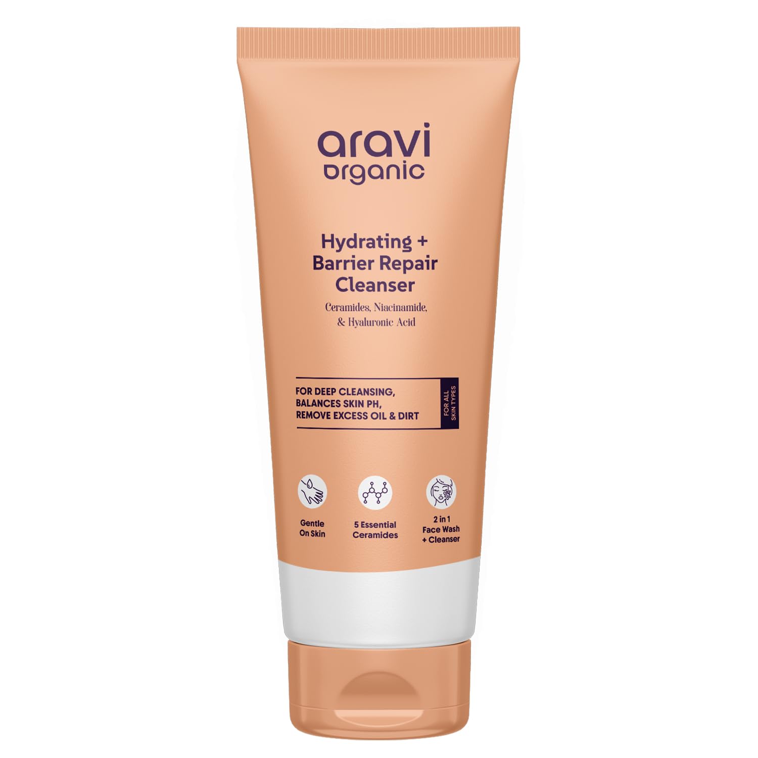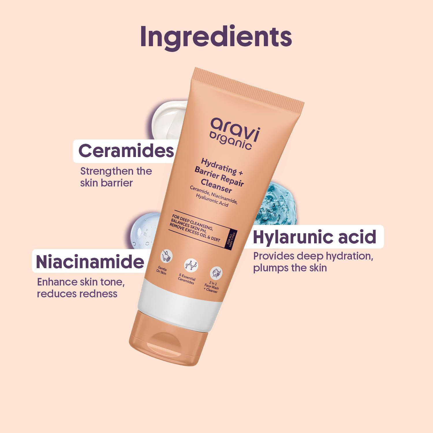 Aravi Organic Hydrating Barrier Repair Face Wash - With Ceramide Niacinamide & Hyaluronic Acid - Nourishing & Hydrating Cleanser for All Skin Types - Gentle Daily Cleanser for Soft & Smooth Skin - 100 ml