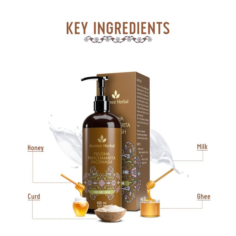 Prusha Panchamrita Face Wash | For Normal to Dry Skin | With Real Panchamrita To Gently Cleanse You Skin Leaving It Moisturized (400 ml)
