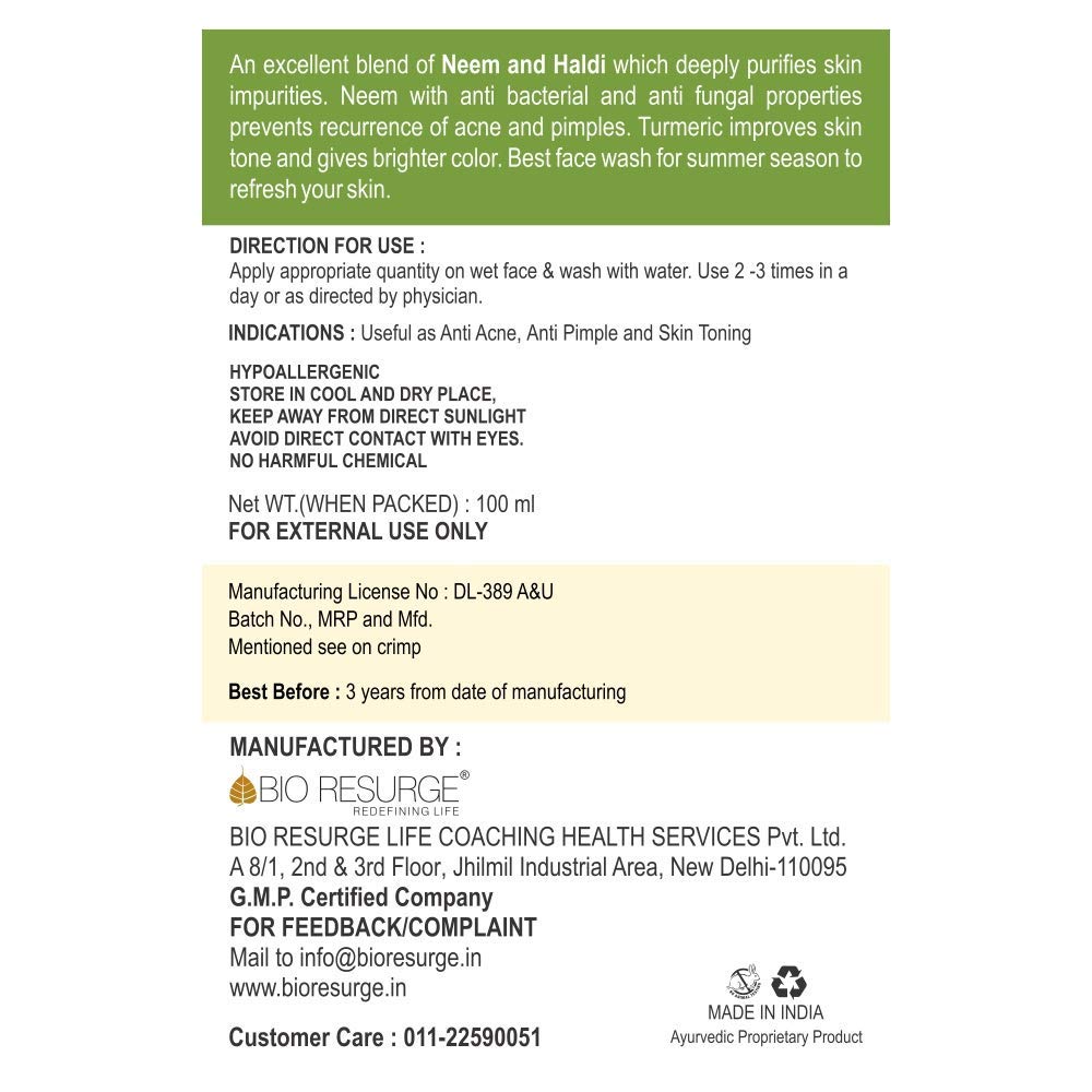 Bio Resurge Life Anashwara Neem Haldi Face Wash to remove pimples and acne (100 ml)