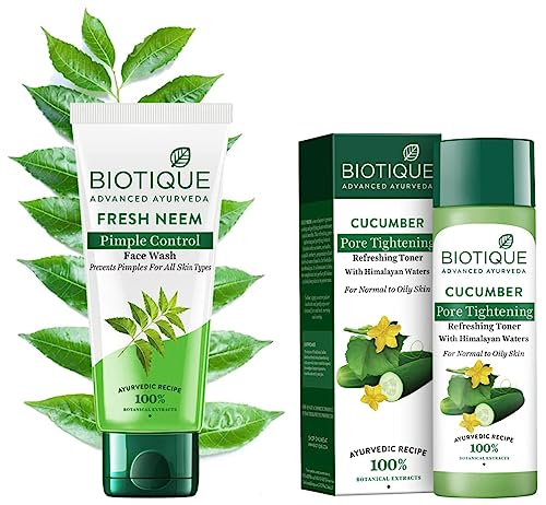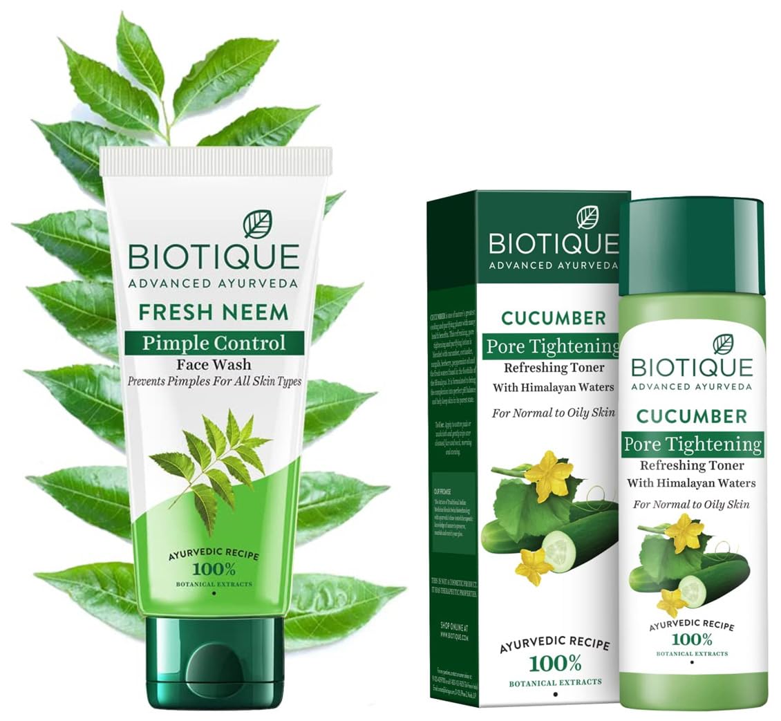 Biotique Bio Cucumber Pore Tightening Toner, 120ml And Biotique Bio Neem Purifying Face Wash for All Skin Types, 150ml