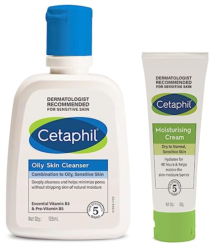 Cetaphil Oily Skin Cleanser, Daily Face Wash for Oily, Acne prone Skin, Gentle Foaming, 125ml & Cetaphil Moisturising Cream for Face & Body, Dry to very dry skin, 80 gm