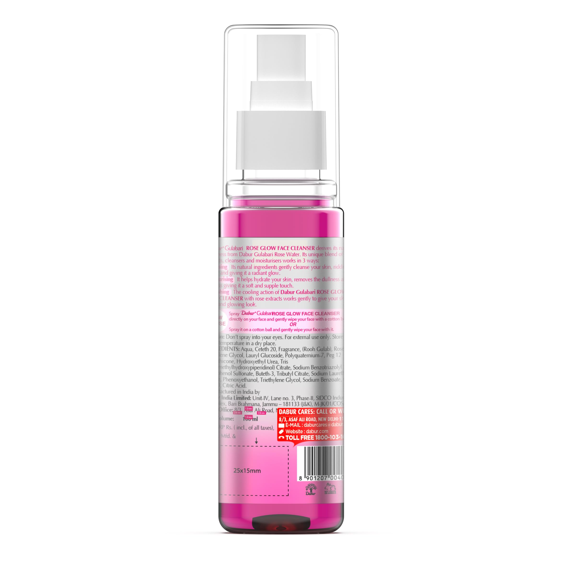 Dabur Gulabari Rose Glow face cleanser results in a Clean refreshed and cool skin. It is effective for all skin types and can be used by all. Just Spray Dabur Gulabari Rose Face Cleanser directly on your face and gently wipe your face with a cotton ball. It helps in cleaning the face and removing any Dirt or Oil. It also Hydrates and moisturises the skin.