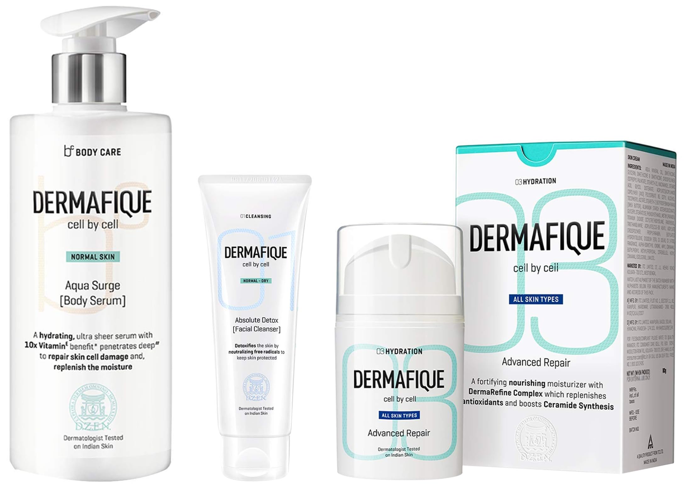 Dermafique Advanced Repair Night Cream&Dermafique - Absolute Detox Facial Cleanser 100 ml&Dermafique Aquasurge Body Serum