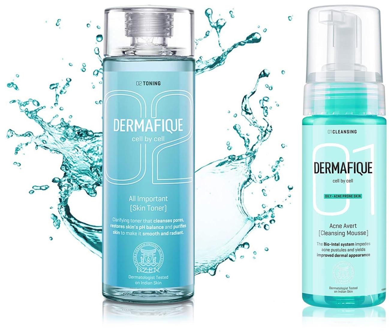 Dermafique All Important Skin Toner Aqua Marine 150ml & Dermafique Acne Avert Cleansing Mousse Facewash for Oily To Acne Prone Skin Dermatologist Tested P