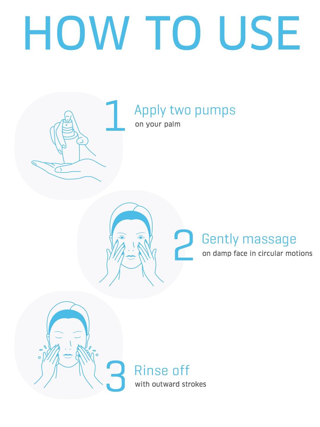 • A foaming cleanser that lifts away impurities without drying out the skin