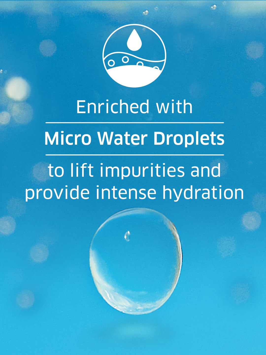 • Micro Water droplets amply hydrate the skin unlike regular face cleansers that strip the skin of essential moisture