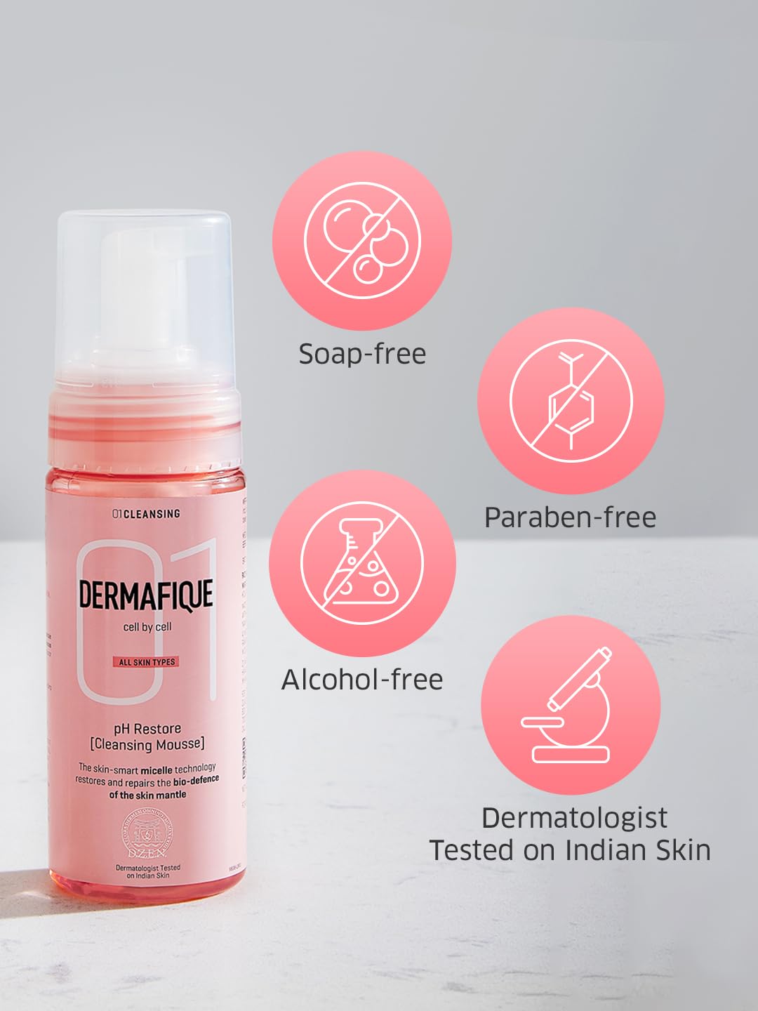 Dermafique pH Restore Foaming Mousse 150ml Gently Remove Impurities Ultra Mild Foaming Face Cleanser | Soap Paraben & Alcohol Free | Dermatologist Tested Face Wash