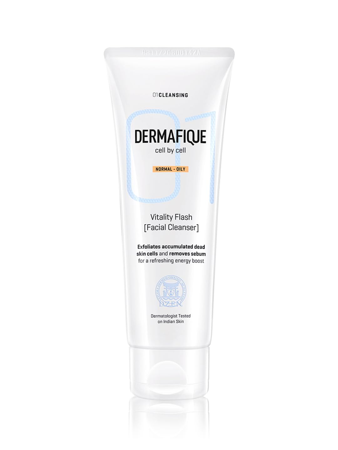 External factors like the sun pollution etc. can have many damaging effects on the skin. Free radic(molecules) found in the environment o play an important role in ing to the damage and aging process. All of these factors cause your sebaceous glands to go into an overdrive which to excess oil production in the skin. This only makes your skin look dull and feel sticky. To combat the damage and feeling of stickiness you need a facial cleanser that can gently exfoliate and your skin and thereby minimise the trigger for excess oil production. The Dermafique Vitality Flash (Facial Cleanser) is enriched with Vitamin E micro-pearls and orange zest extract that gently exfoliate accumulated dead skin cells remove excess sebum and lift away impurities to give the skin a refreshing of energy. Dermafique encourages you to follow the smart new derma-routine: 01 cleanse. 02 tone. 03 hydrate for healthy beautiful zen-like skin. The Vitality Flash (Facial Cleanser)is a vital part of the cleanse portfolio step 01 of a highly effective system that des cleansed balanced and hydrated skin.