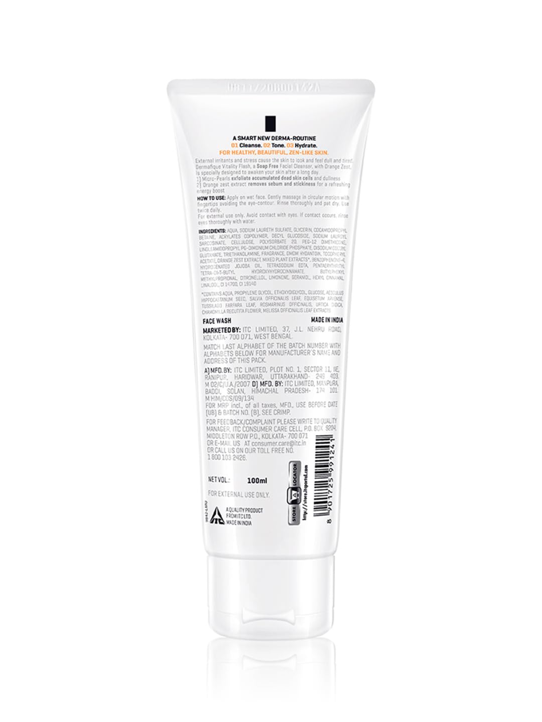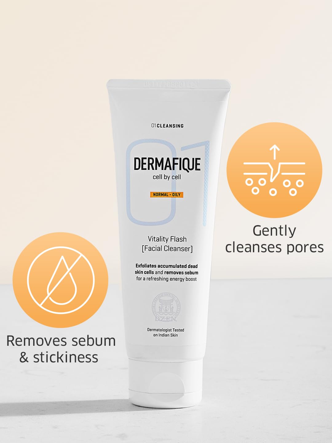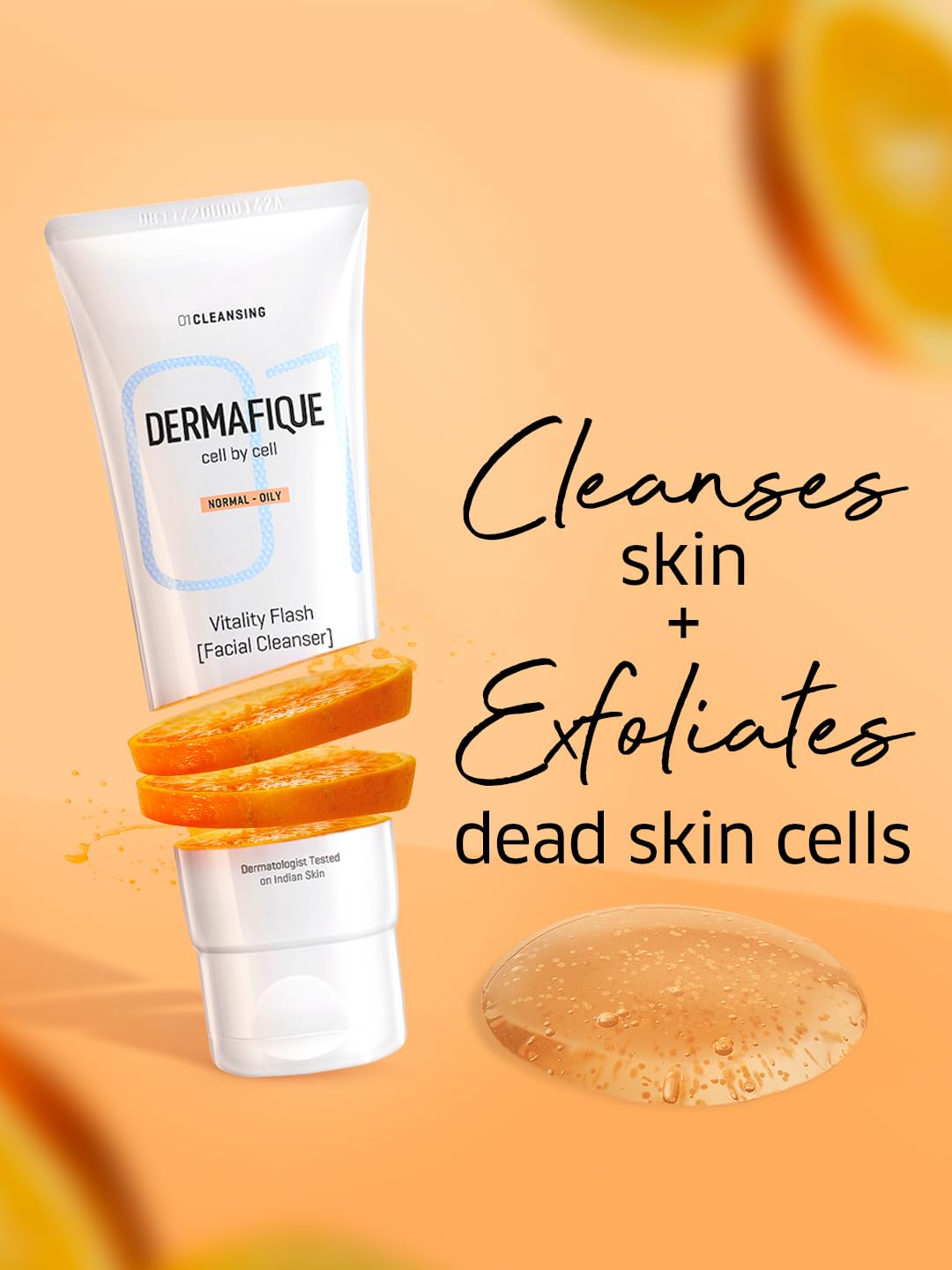 Dermafique Vitality Flash Facial Cleanser 100ml Orange Zest Extract Removes Sebum (Oil) Face Wash with Micro Pearls Exfoliator | Soap Paraben & Alcohol Free | Dermatologist Tested