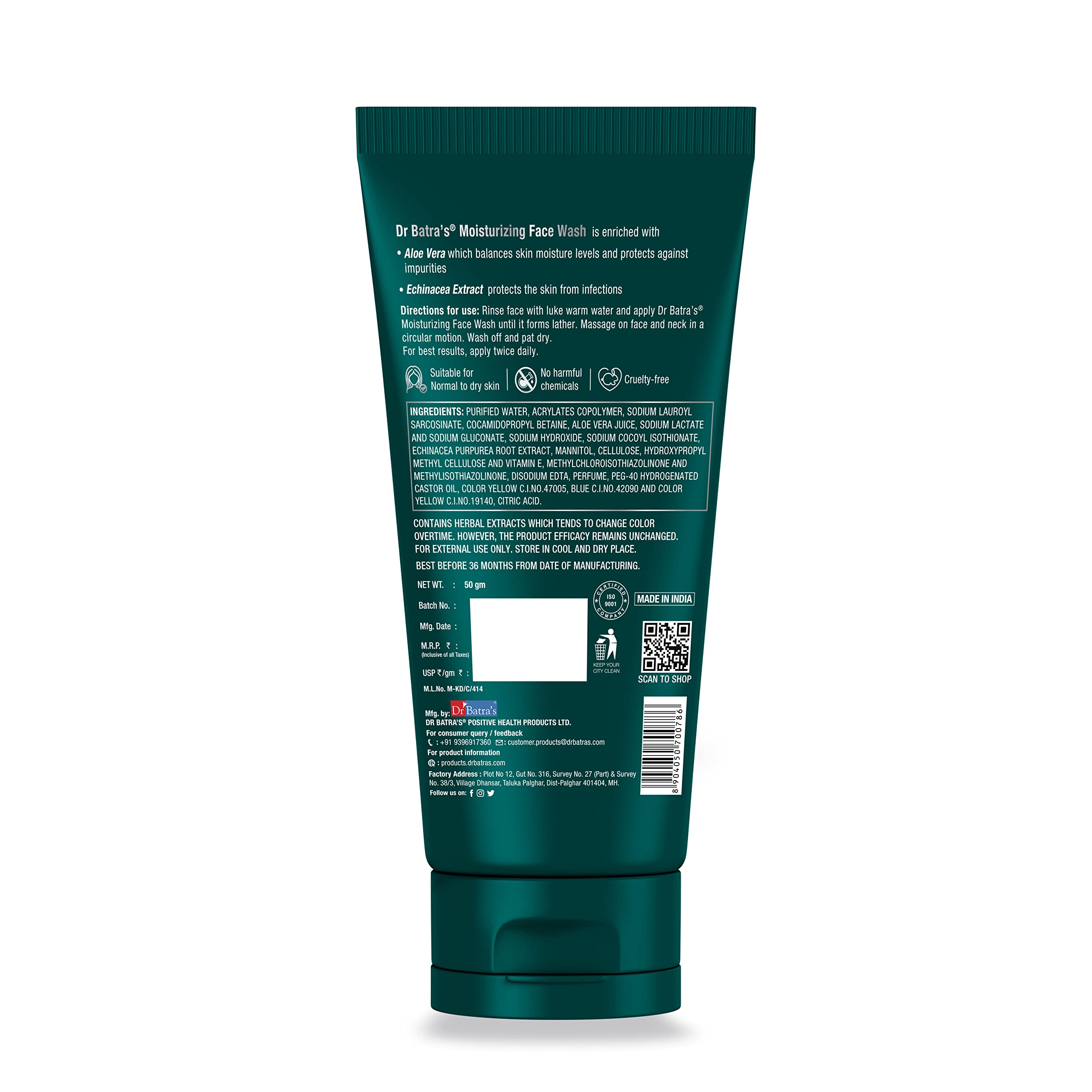 Dr Batra's range of skin care products are carefully formulated with natural ingredients to cleanse nourish and protect your skin. Dr Batra's Moisturizing Face Wash is infused with the goodness of Aloe Vera and Echinacea extracts. With intense purifying and moisturizing properties this moisturizing face wash helps to enhance overall skin health. Packed with anti-Aloe Vera moisturizes the skin while Echinacea helps to fight against skin problems. Dr Batra's Moisturizing Face Wash is free from harsh chemicand provides a gentle cleansing action. Best suited for those with normal to dry skin it is recommended to be used twice a day for skin that feels clean soft and youthful.