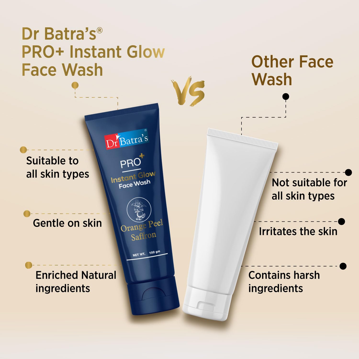 • "Dr Batra's PRO+ Instant Glow Face Wash is strengthened with natural ingredients to make it the best face wash for glowing skin. It is enriched with the goodness of Aloe Vera Orange peels Echinacea Saffron and Vitamin E for healthy-looking skin."