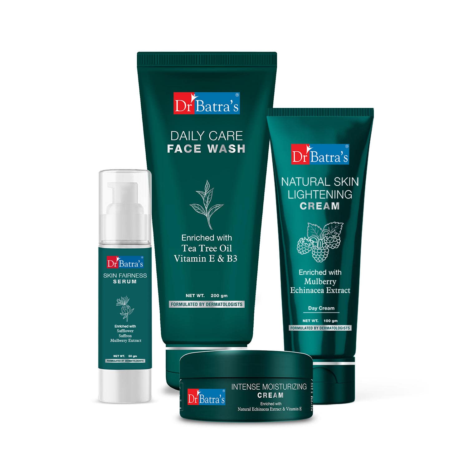 Dr Batra's Skin Fairness Serum - 50 G Face Wash Daily Care - 200 gm Natural Skin Lightening Cream - 100 gm and Intense Moisturizing Cream -100 G (Pack of 4)
