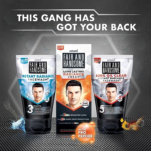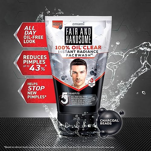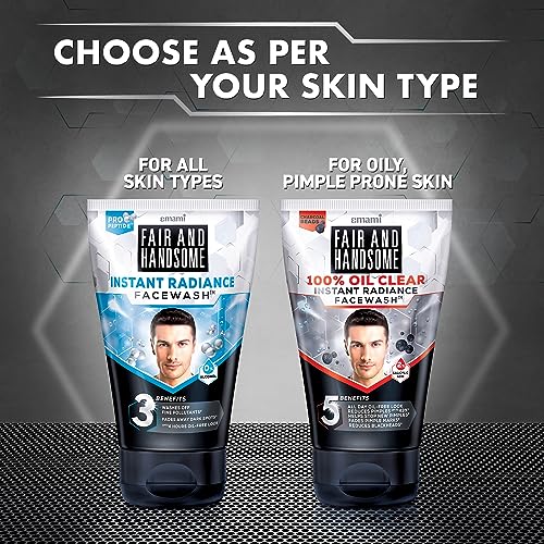 Fair And Handsome presents all new 100% oil Clear Instant Fairness Face Wash enriched with Oil Clear Peptide and Purifying Charcoal Beads. This breakthrough formulation specially designed for men's tough skin helps eliminates dirt from within* and clear excess oil upto 100% and gives a Clean Oil-Clear Fresh Fairer look instantly. *Within top layer of epidermis