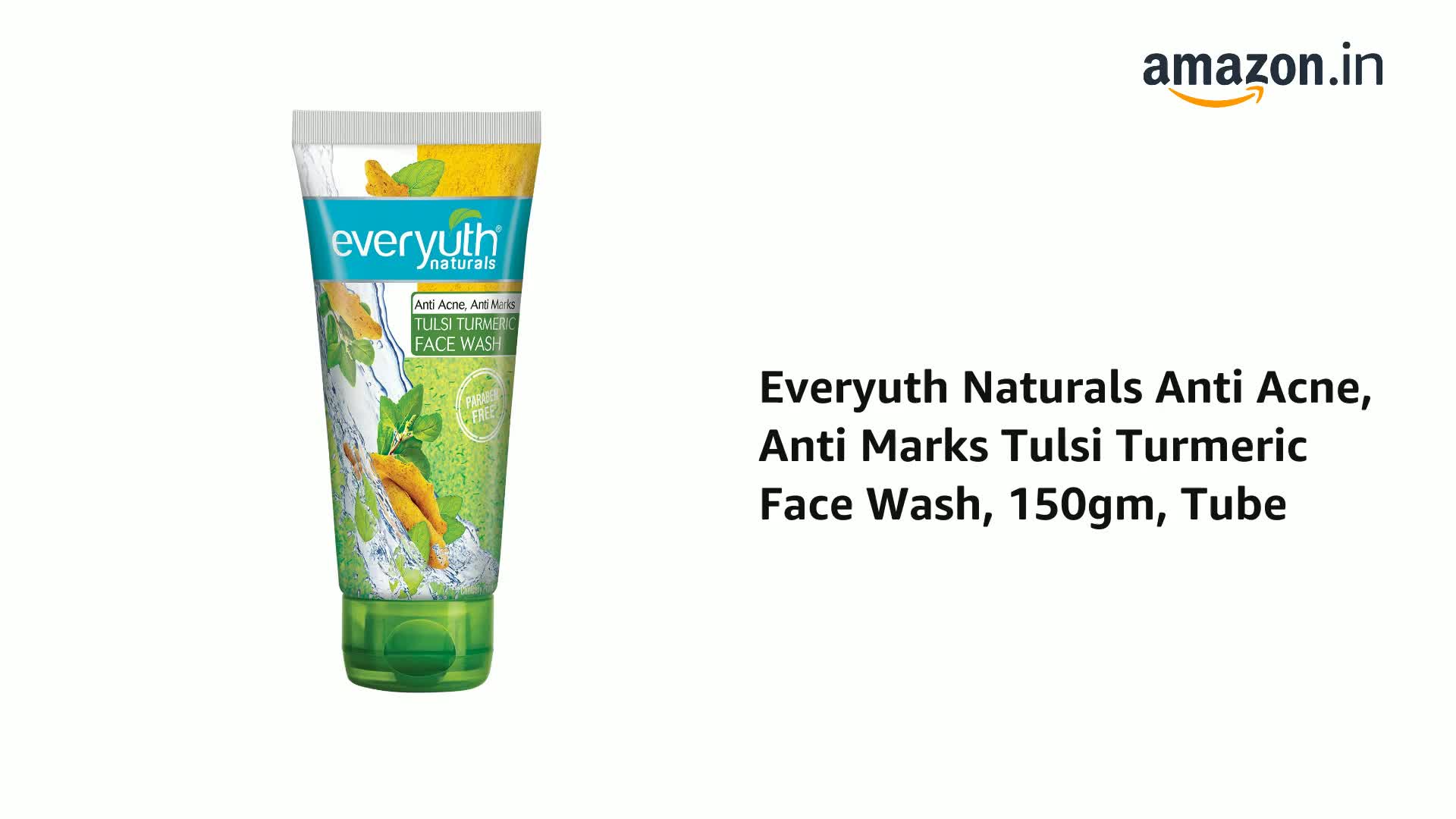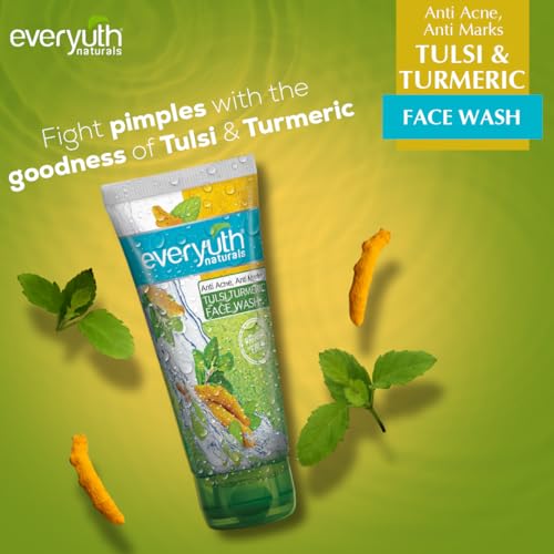 Everyuth Naturals Anti Acne, Anti Marks Tulsi Turmeric Face Wash|Gentle Exfoliation & Blemish Control|Paraben free|For Oily, Dry, Normal, Combination & Sensitive Skin|100% Soap Free - 150 g