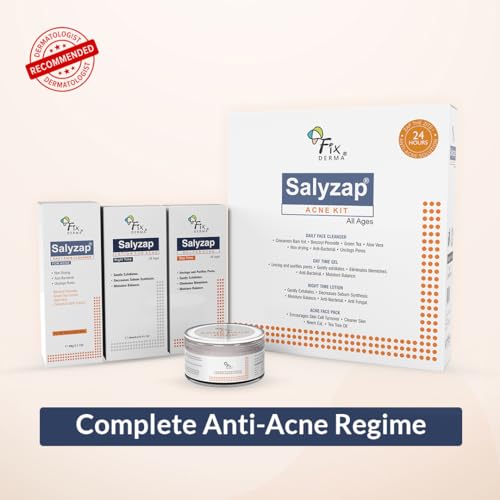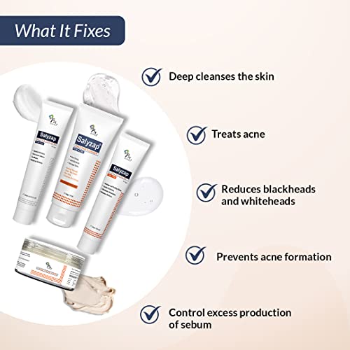Fixderma Salyzap Acne Kit, Acne Kit for Face, Acne Control Kit, Complete Skincare Regimen for Acne and Dark Spots, Includes Salyzap Facewash, Day time gel, Night time gel and Face pack,