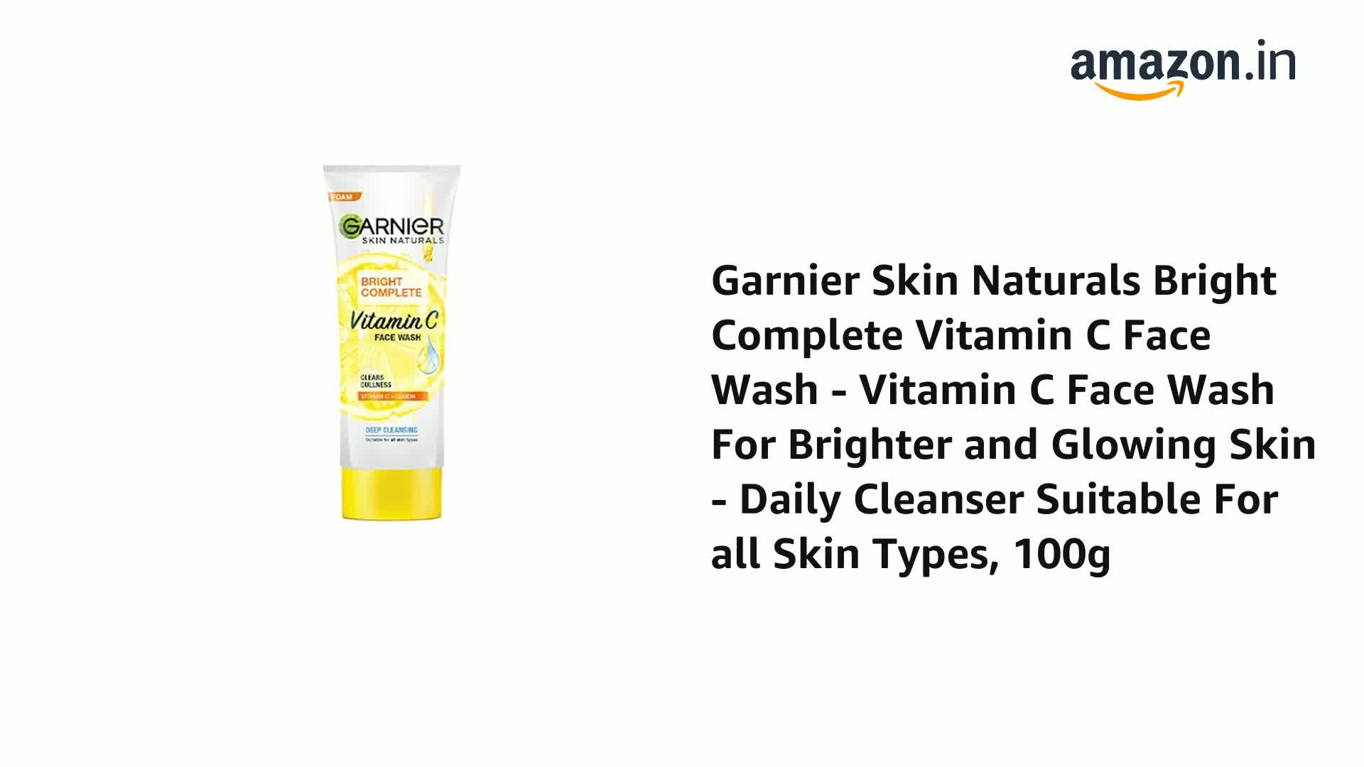 Size:100 ml,|Design:Duo Action FacewashGarnier Light Complete Duo Action is a womens facewash which gives you fairer looking skin in 1 wash. It is enriched with White Clay which gives instant whitening and Lemon Extracts which helps reduce dark spots. It also has Vitamin B3 and Vitamin CG known to help reduce the appearance of new dark spots. It is suitable for all skin types. How to use - Apply on wet face. Gently massage with fingertips. Avoid the eye contour area. Rinse thoroughly. For best skin care results follow it up with Garnier Light Complete Serum Cream during the day and Garnier Light Complete Night Cream at night.