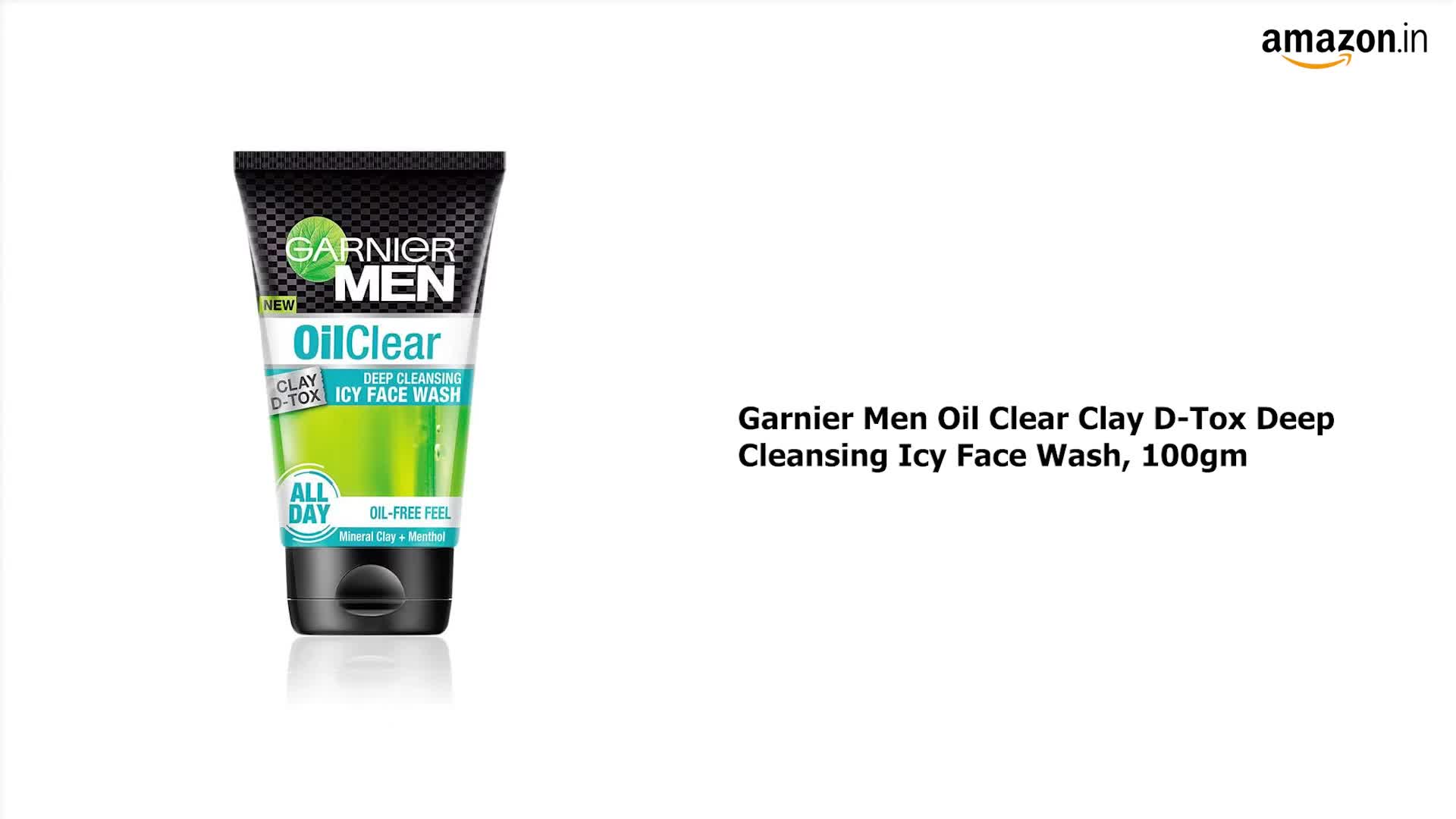 Style name:100 gm, Product DescriptionGarnier Men Oil Clear FaceWash has an intense anti-grease action. It's oil absorbing mineral clay makes skin clean & fresh. Simply massage on wet face & rinse with water. Use twice daily. Garnier Men is India's No. 1 Men's FaceWash Brand*. PRODUCT FEATURES: 1. Enriched with goodness of Menthol & Clay 2. Removes excessive oil without drying skin 3. All Day Oil-Free feel 4. Makes skin clean & freshFrom the Manufacturer Oil Clear Face WashSKIN PURIFYING FACE WASH. ALL DAY OIL-FREE FEEL. OIL TRAPPING MUD TEXTURE Oil Clear Skin Purifying Face Wash with Mineral clay & Menthol Garnier Men creates Oil Clear Face Wash:The 1st deep skin purifying face wash for men: It removes excessive oil without drying while ensuring a day-long oil-free feel. Removes excessive oil without drying: Its special oil-trapping mud texture eliminates excessive oil without drying for an intensive anti-grease action. Day-long oil-free feel: Containing cooling Cryo-menthol and oil-absorbing mineral clay it makes skin clean & fresh. It has a day-long oil-free feel.Usage: Apply on wet face gently massage in with fingertips while avoiding the eye contour. Rinse off. Suitable for daily use. Garnier Men is a specific skincare range tailor-made for men with: The proven power of ingredients of natural origin. Fresh and light formulae adapted to menâs skin. Proven efficacy. Products tested and proven on Indian men.FOR BEST RESULTS USE WITH Garnier MEN POWERLIGHT SWEAT + OIL CONTROL MOISTURISER