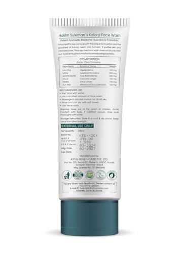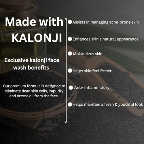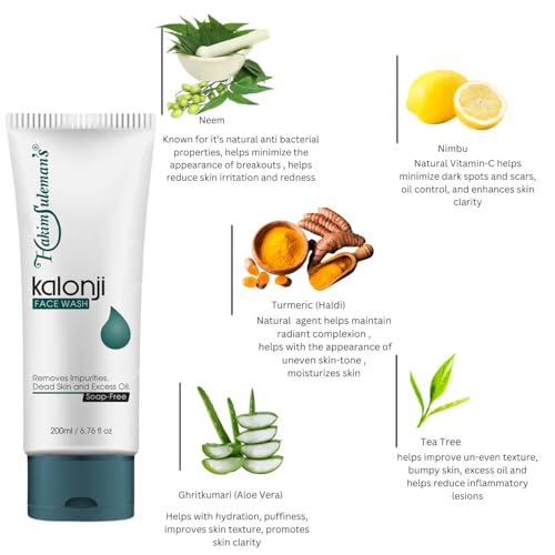 Hakim Suleman's Kalonji Face wash for Tan Removal Face Cleanser for Men & Women | Normal, Combination or Oily Skin | Gently Exfoliates & Evens Tone | Natural & Ayurvedic facewash | 200ml