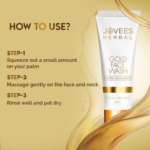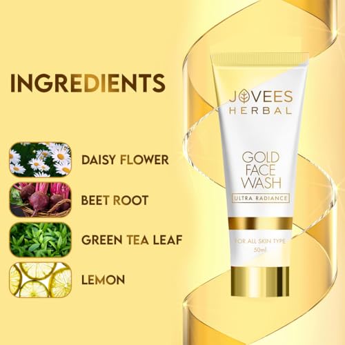 Jovees Herbal Ultra Radiance Gold Face Wash Gives Clear, Nourished & Hydrated Skin, Reduce Dark Spot And Improves Skin Texture | For All Skin Types 50ml