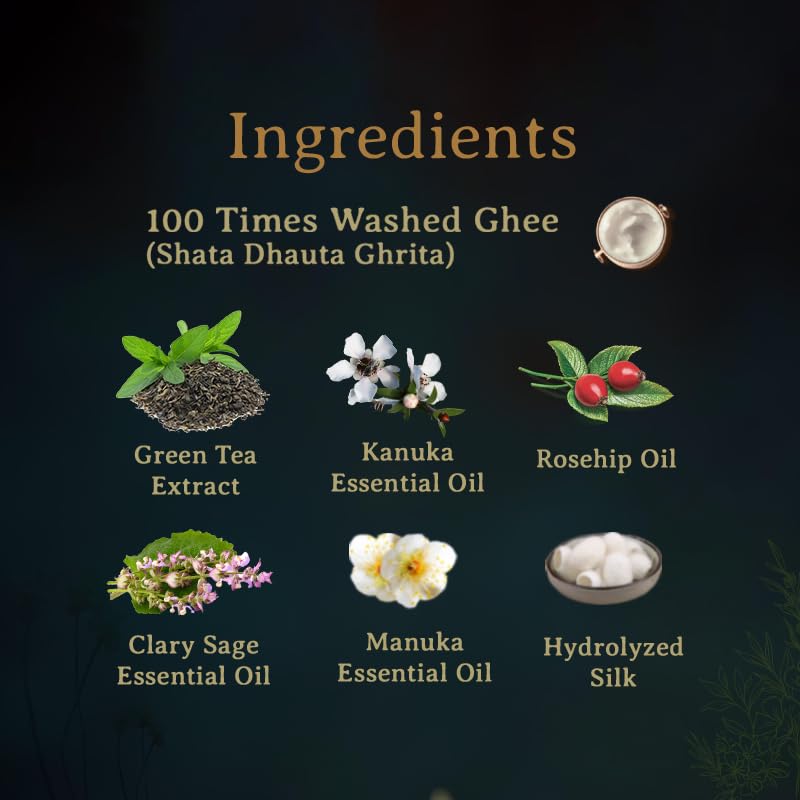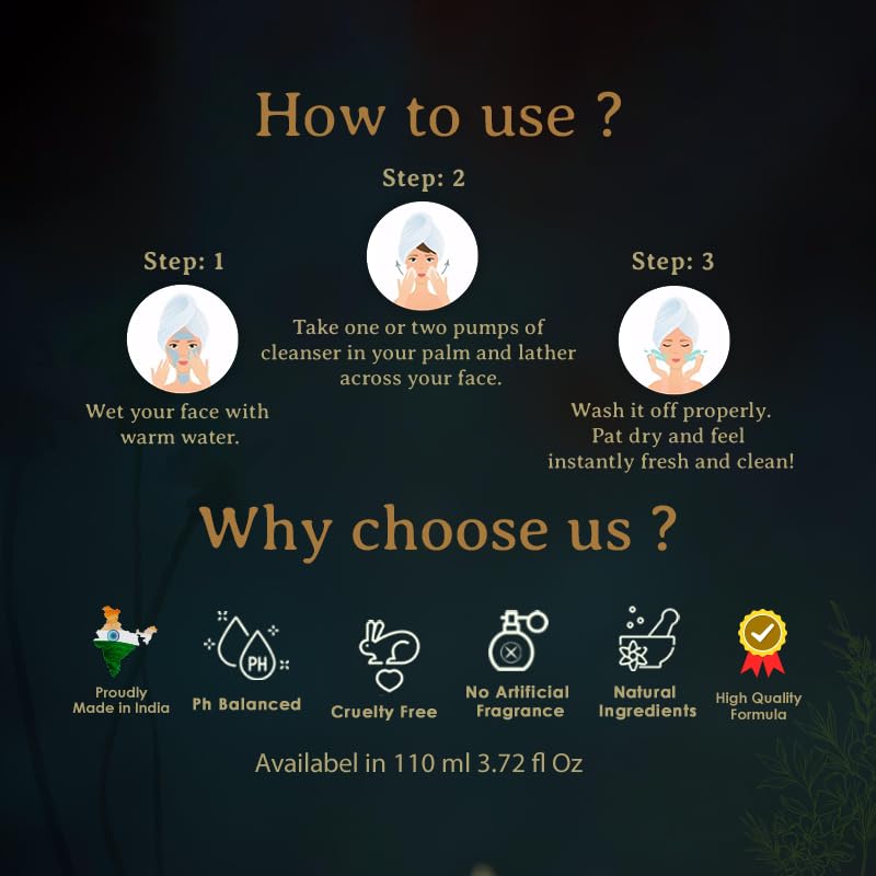 Silk Facial Cleanser Clary Sage and Manuka is formulated according to Ayurveda's rare books we have used precious and most effective ingredients (100 Times Washed Ghee Herb Extracts Essential Oils Carrier Oils & Naturally derived Surfactants) according to Vedic Shastra The basic of cleansing is to remove dead cells and toxins to clear clogged pores and to remove make-up without stripg the skins natural oil and moisture content.Following this method the Clary Sage Manuka & Silk infused Facial Cleanser is an ideal gentle and natural alternative to harsh Sulphate infused cleansers. This leaves skin glowing and balanced after each use without drying out or irritating the skin. It contains Clary Sage which helps to skin and soothe skin. Manuka s bacterial growth drastically and absorbs impurities from skin making it an ideal cleansing agent that hydrate and softens the skin. Infused with real silk which gives luster and shine to skin. It is especially formulated to treat Acne and Pimple.
