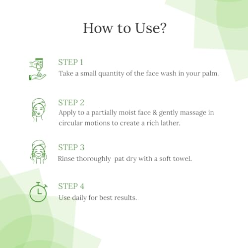 • Squeeze a small quantity of face wash onto your palm and gently massage your face in a circular motion. Rinse thoroughly and pat dry.