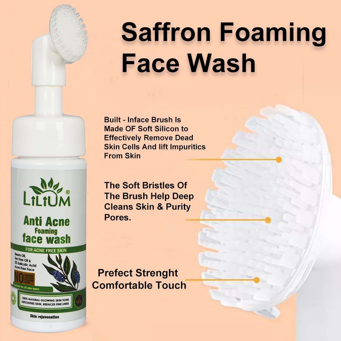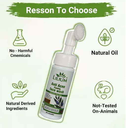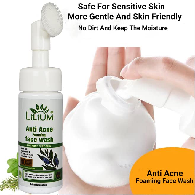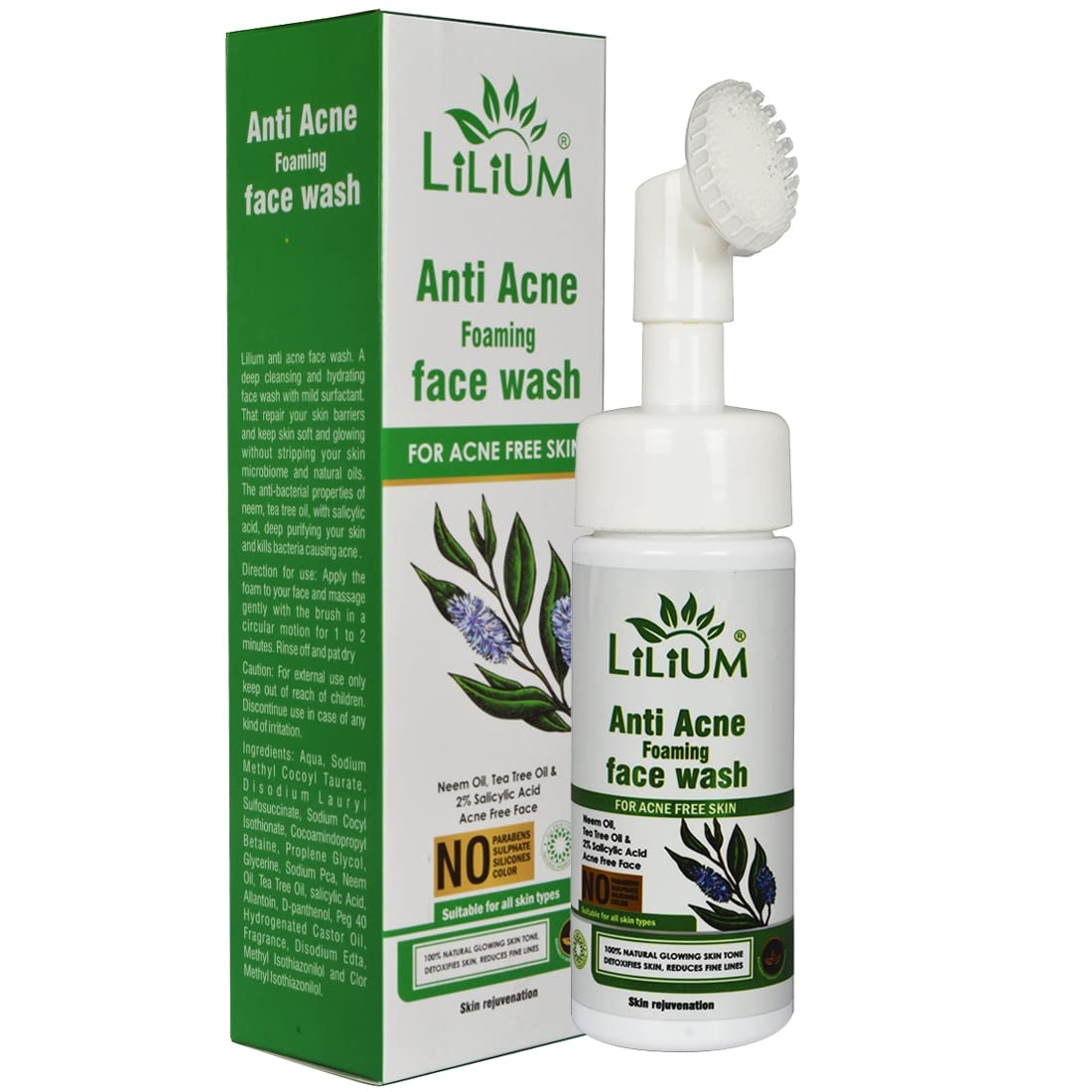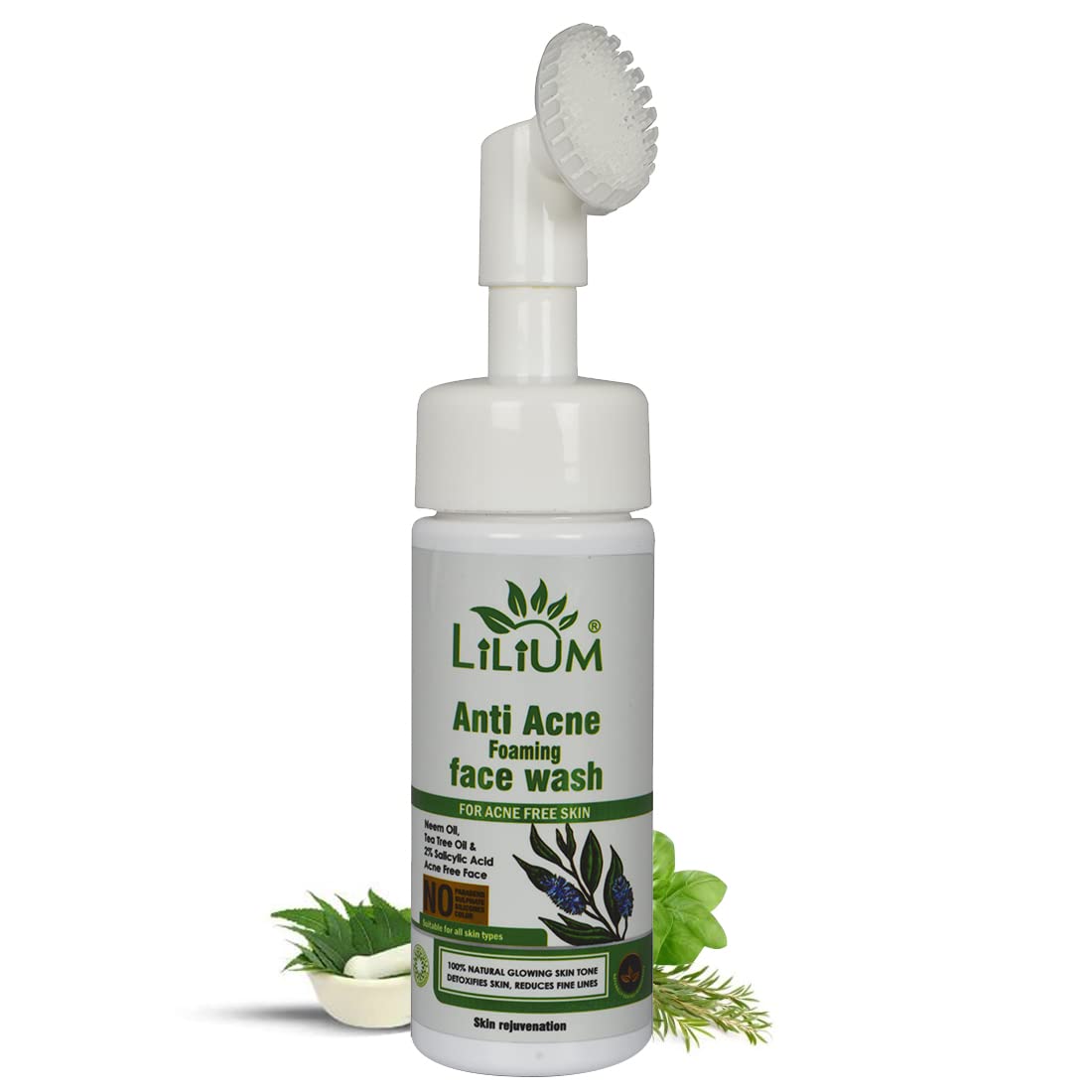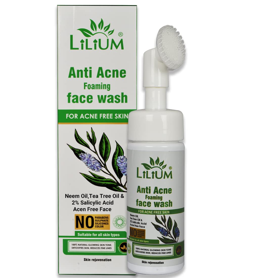 Lilium Anti Acne Foaming Face Wash 150ml | For Acne Free Skin | Enriched With Neem Oil & Tea Tree Oil|Detoxifies Skin & Reduce Fine Lines | No Sulphate & Silicones Parabens Free