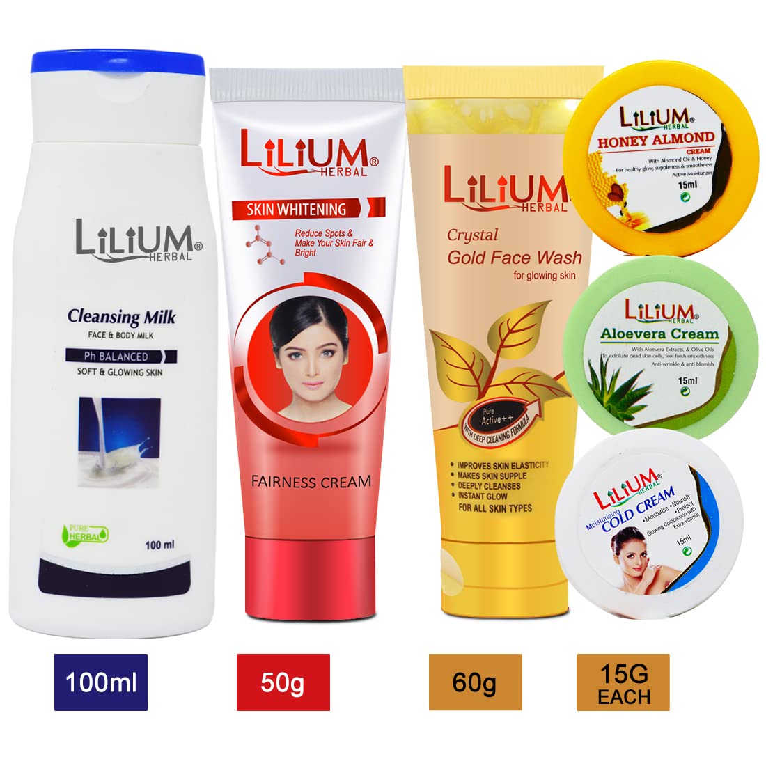 Lilium Herbal Cleansing Milk Cold Cream Fairness Cream & Crystal Gold Face Wash Set of 6-GC626
