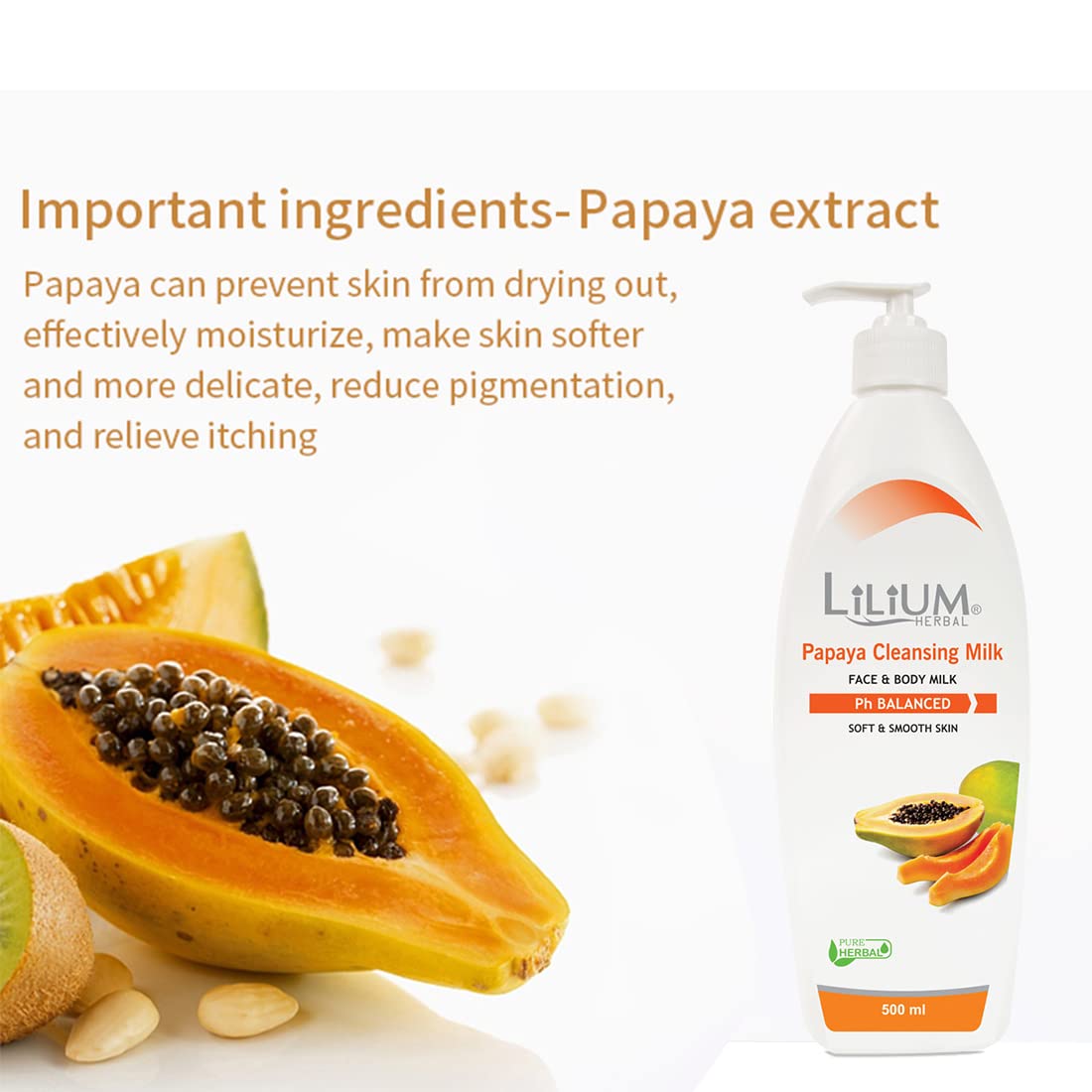 Lilium Herbal Papaya Cleansing Milk 500ml Pack of 2 PH Balanced Soft & Smooth Skin Deep Cleanse Hydration Brightening Radiant Complexion All Skin Types For Women & Men