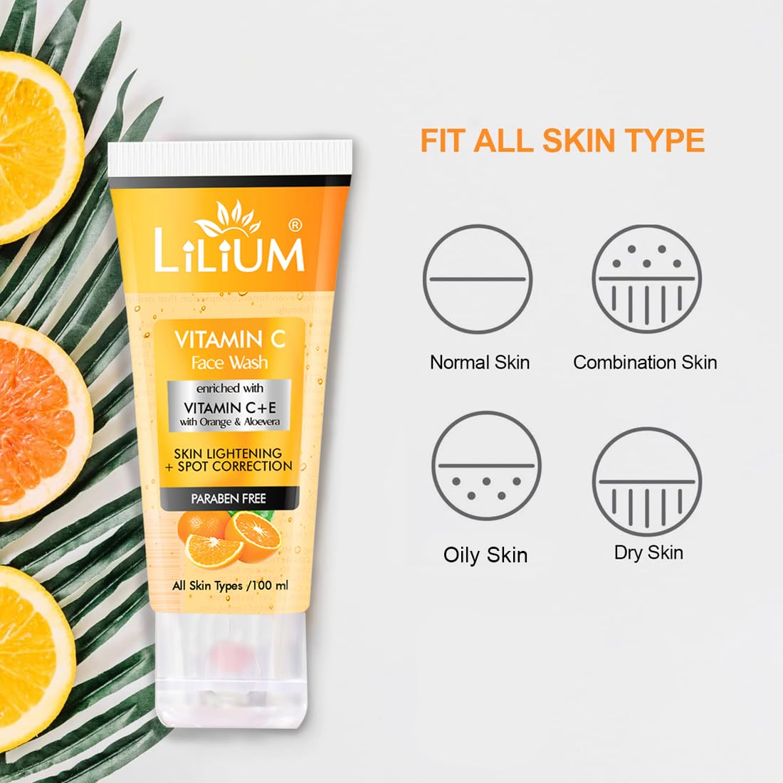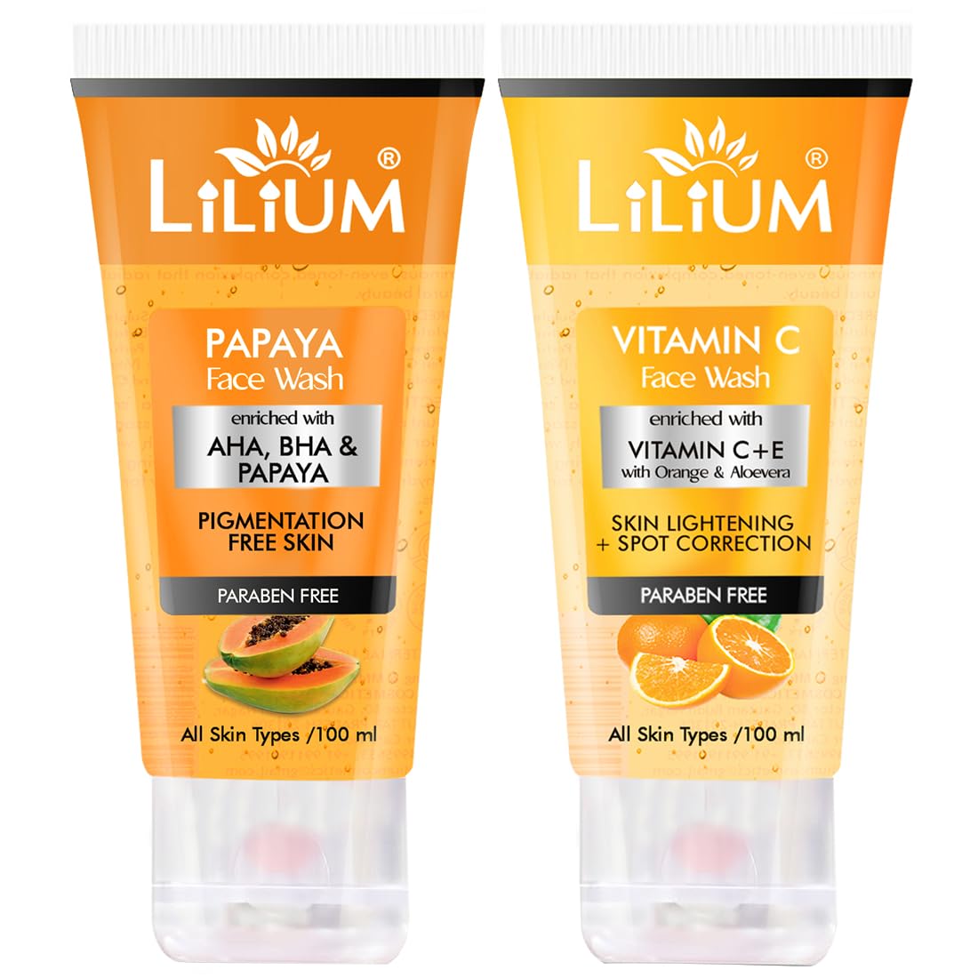 Lilium Papaya & Vitamin C Face Wash 100ml | Pigmentation Free Skin Lightening & Spot Correction | All Skin Types | Pack of 2