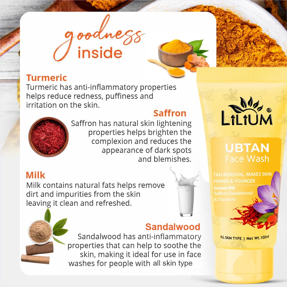 • [GENTLE EXFOLIATION] Lilium ubtan face wash gently exfoliates the skin removing dead skin cells dirt and impurities revealing a smoother and brighter complexion.