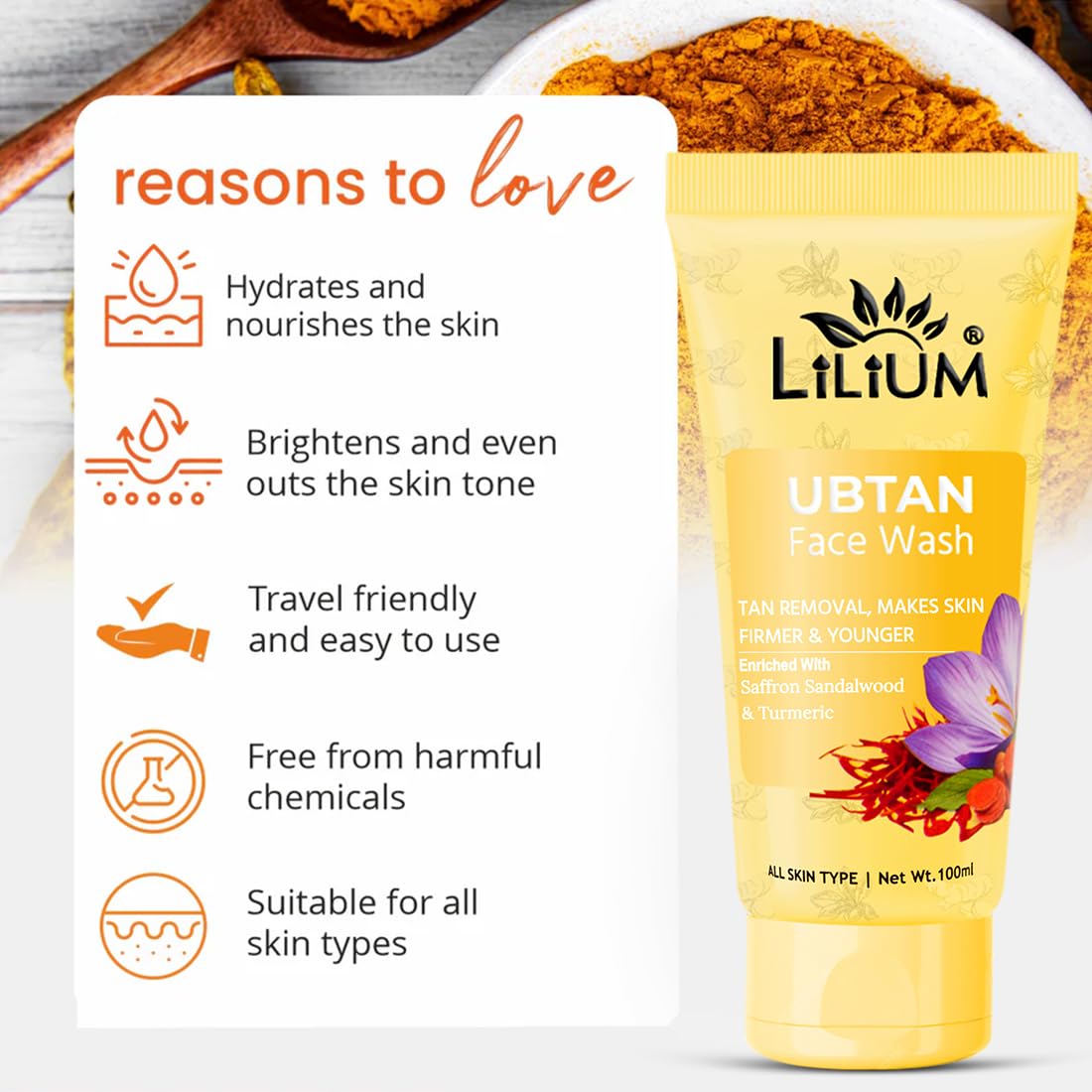 Lilium Ubtan Face Wash 100ml | Enriched with Turmeric & Saffron | Radiant & Flawless | Paraben Free | All Skin Types (Pack Of 2)