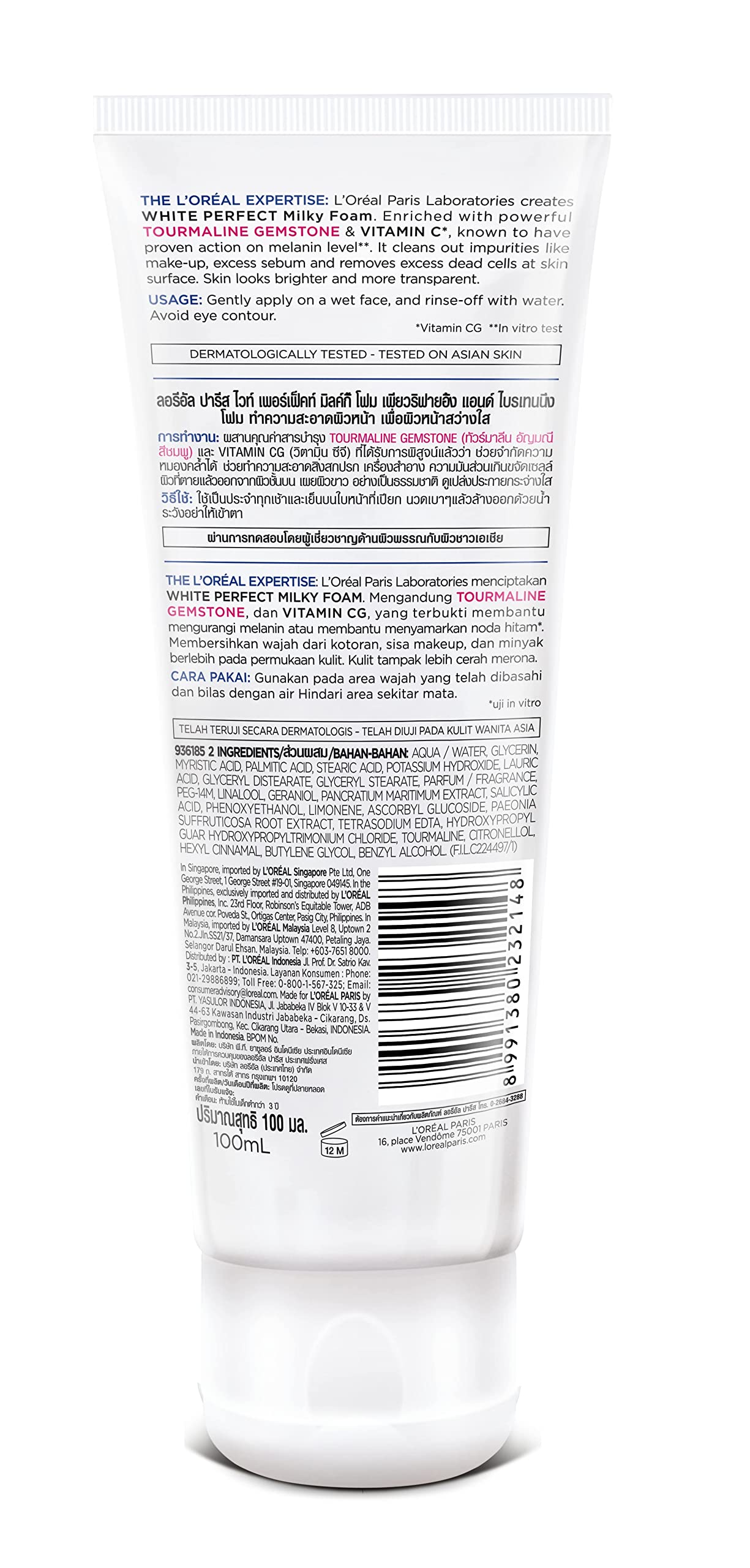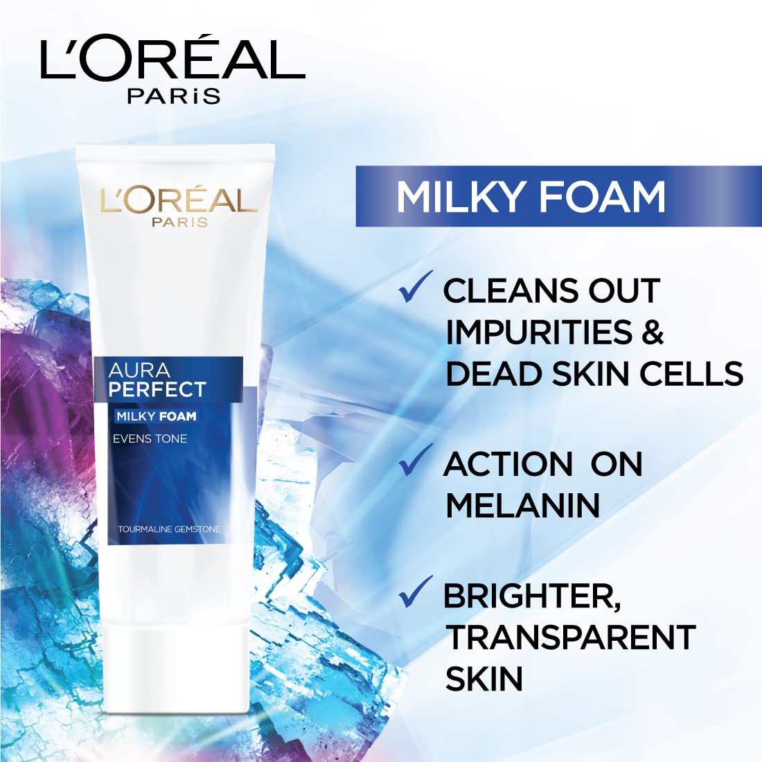 Looking for refreshed glowing skin? Experience L'Oréal Paris Aura Perfect Milky Foam Facewash to deeply cleanse purify and refresh your skin. Enriched with powerful skin brightening benefits to complexion; whilst cleaning impurities make-up excess sebum and removing dead skin cells at the same time. Tourmaline Gemstone helps stimulate microcirculation and a natural glow whilst Vitamin E helps fight against skin damage. Leaving you with cleaner brighter radiant skin.