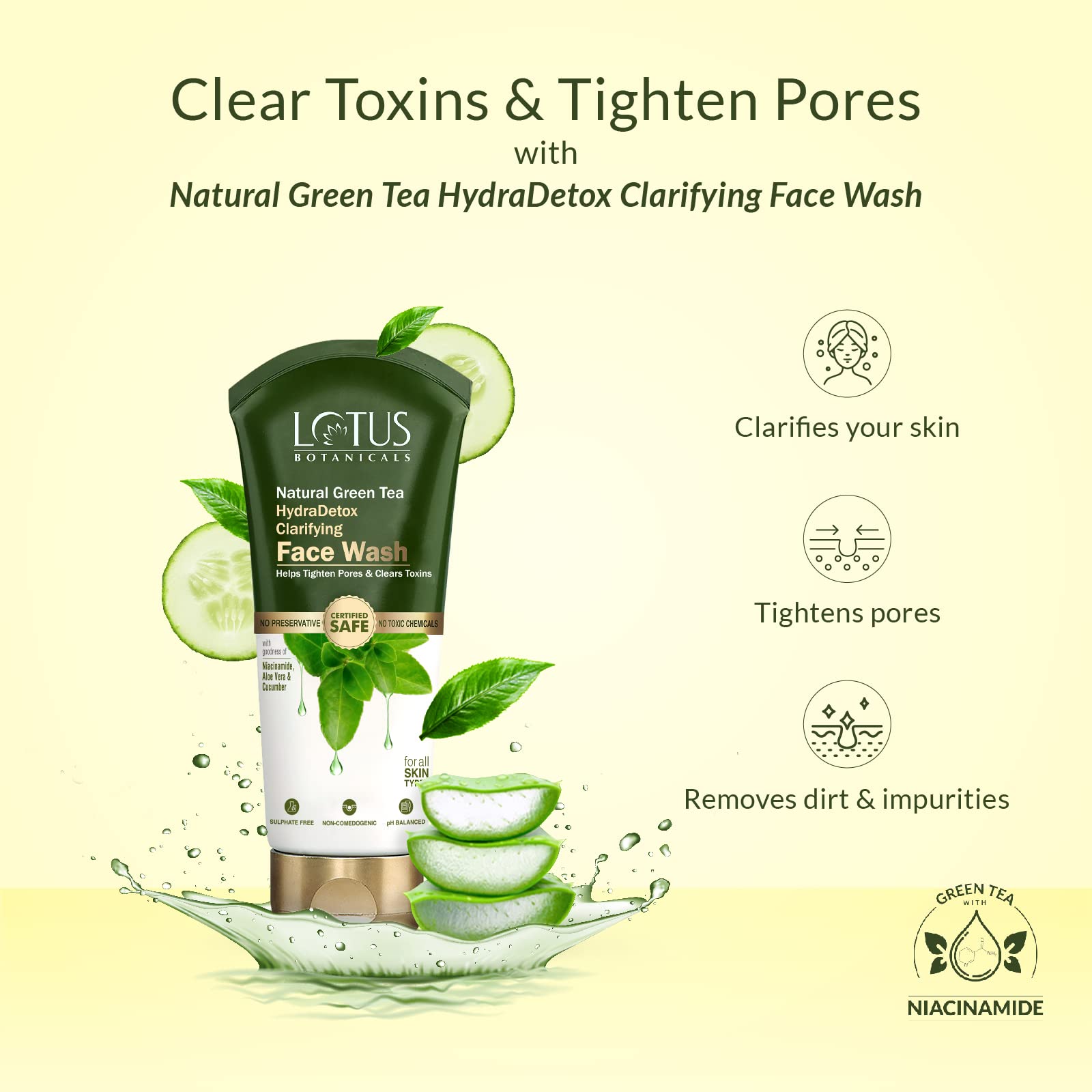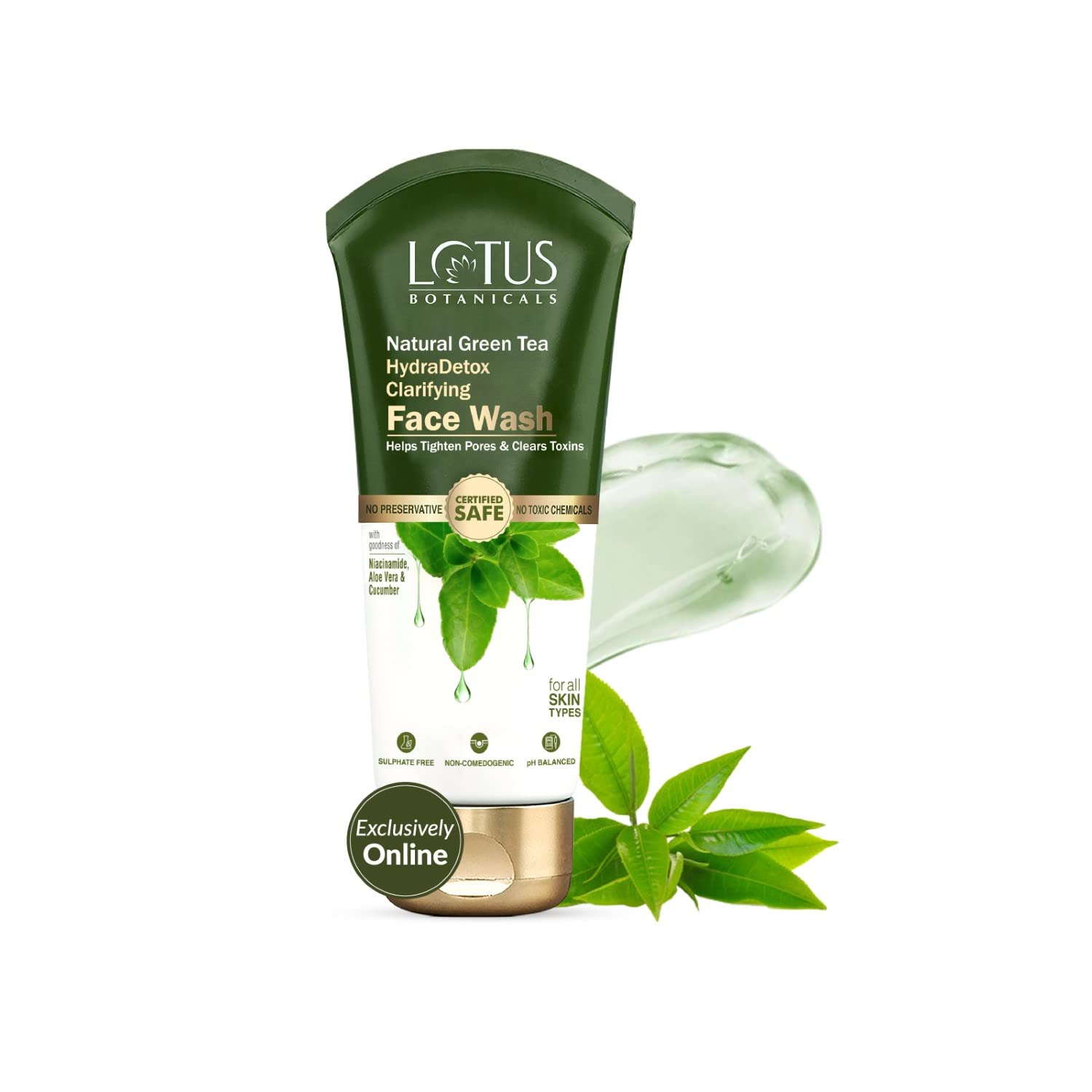 Lotus Botanicals Natural Green Tea HydraDetox Clarifying Face Wash with Niacinamide | Boosts Glow & Brightens Skin | Fights Acne and Pimples | Tightens Pores & Clears Toxins | Preservative Free | For All Skin Types | 100g